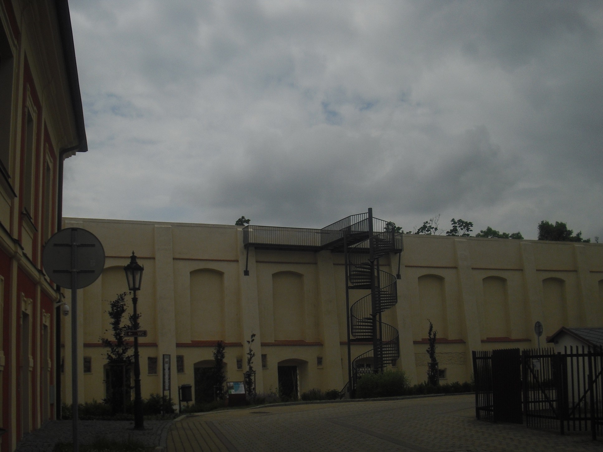 Zeď ukončovaly dvě nárožní věžice propojené horní vyhlídkovou terasou s balustrádou a sochami. Zámek tak působil při pohledu z parku rozsáhlejším dojmem, což byl patrně také záměr. Ve spodní části severní věže nechali vybudovat dokonce grótu, umělou malou jeskyňku, ze které vytékala v kaskádách voda.