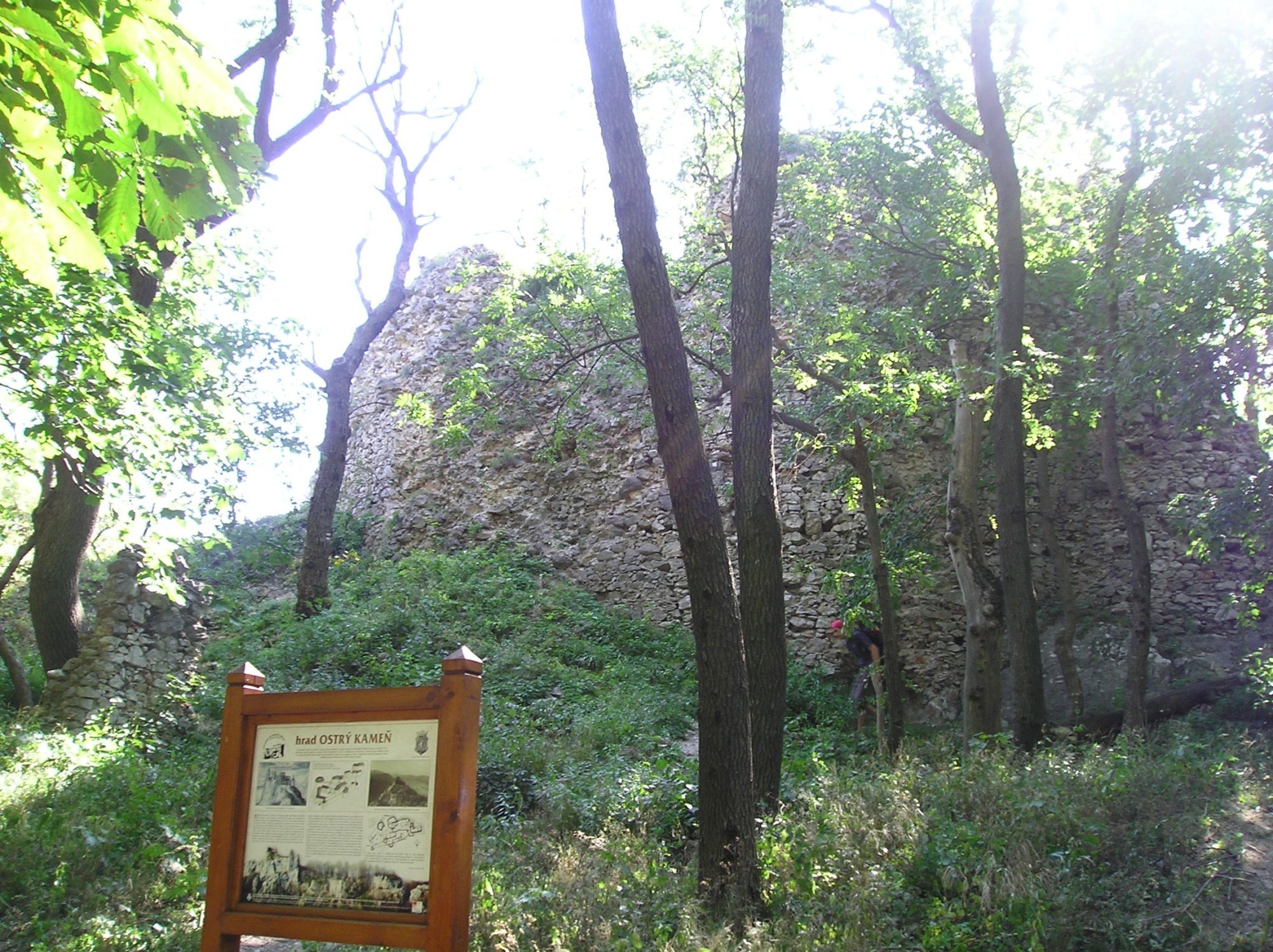 Ostrý Kameň postavili v 13. storočí. V listinách sa prvý raz spomína v roku 1273 ako jeden z pohraničných hradov stážiacich západnú hranicu Uhorska. Spolu s Korlátskym, Plaveckým a Smolenickým hradom patril do reťaze pevností, ktoré dozerali na tzv. Českú cestu. Išlo o starú historickú cestu z Prahy do Budína používanú už od doby bronzovej. Neďaleko Ostrého Kameňa prekračovala hrebeň Malých Karpát. Význam tejto dopravnej tepny sa ešte zvýšil po roku 1336 tým, že kráľ Karol Róbert udelil osobitné výsady obchodníkom, ktorí po tejto ceste rozvážali tovar. Gotický hrad vystavali na skale, ktorú od hlavného hrebeňa Zárub oddeľovala priekopa vysekaná do podložia. Hradný objekt sa skladal z tzv. horného gotického hradu s vežou, palácom a kaplnkou a z nižšie položeného predhradia zo 16. storočia, ktoré slúžilo zväčša hospodárskym účelom. Na horný hrad sústredili stráž, bola tu Kuchyňa a väznica.