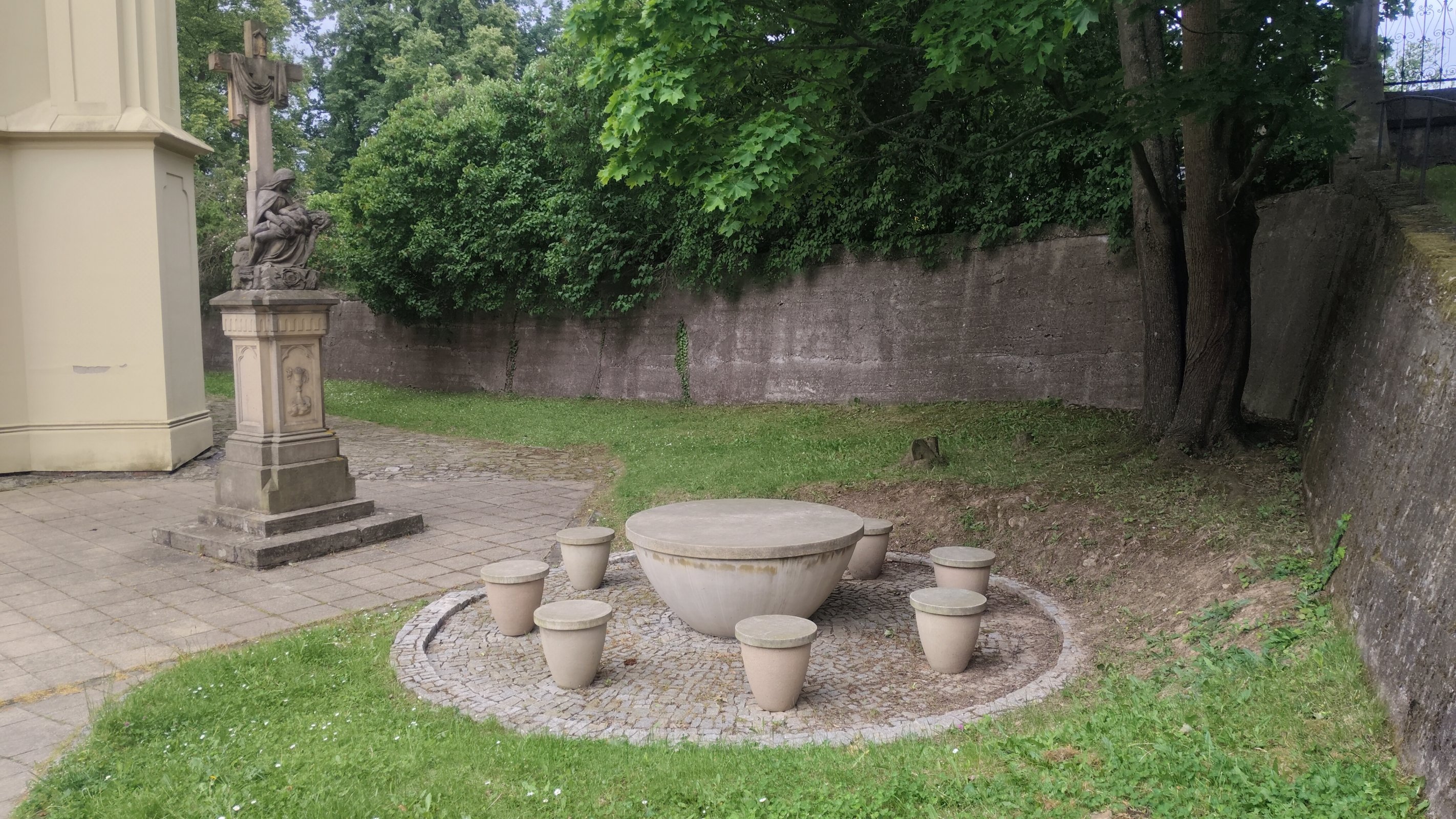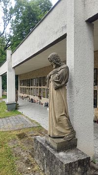 Na rozšířeném hřbitově je postaven umělecký kříž od olomouckého sochaře Pelikána. Vzácné je pochopení a péče kněze o historické památky, m.j. přenesení pískovcových reliéfů z vlhké hřbitovní zdi do suché venkovní zdi kostela. Stejně tak dříve jmenovaných erbů dovnitř kostela a opravu farské fresky restaurátorem p. Syslem.