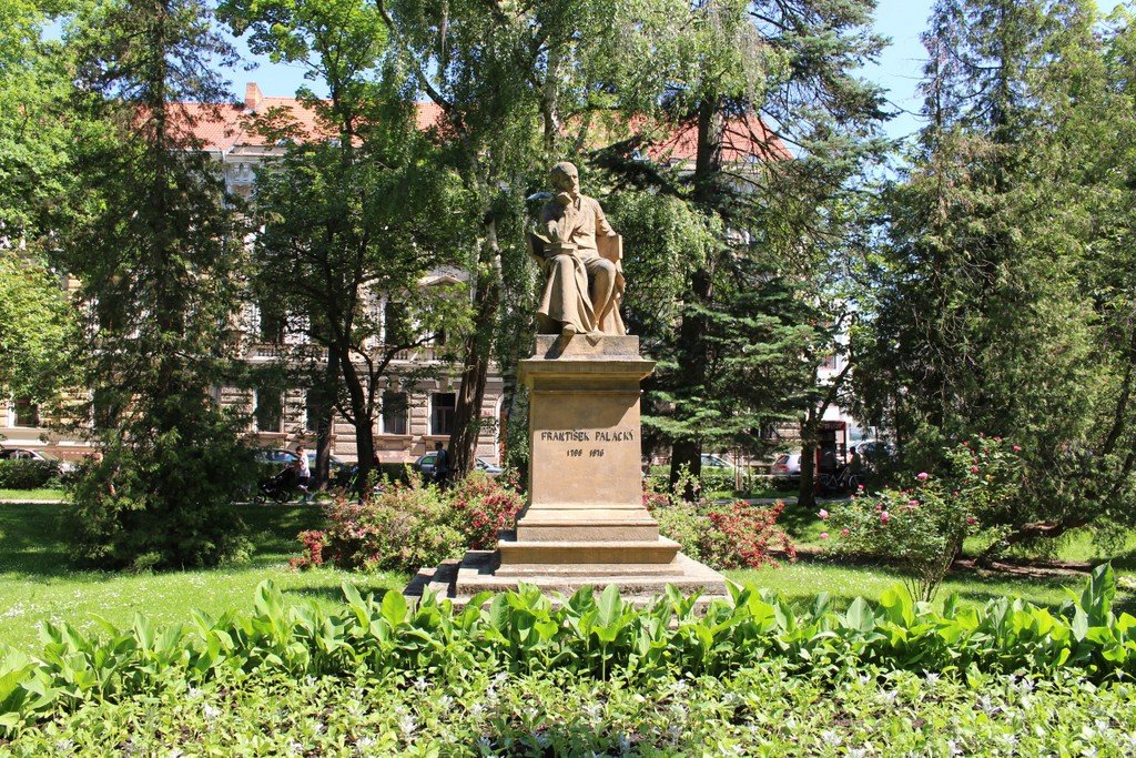 Palackého sady, v pozadí socha Františka Palackého