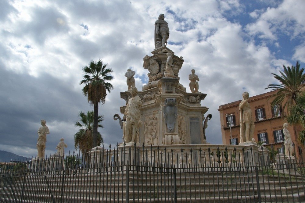 Palermské Mramorové divadlo překvapivě není historickou divadelní budovou, ale krásnou ukázkou sochařské práce ve stylu tzv. sicilského baroka. Cenná památka pochází z roku 1622, byla postavena na počest krále Filipa IV. Španělského zvaného Veliký a najdeme ji na náměstí Piazza del Parlamento, tedy v blízkosti Královského paláce. A hned na úvod je potřeba přiznat, že současný pomník už zcela původní památkou není a že byla změněna i vrcholová panovníkova socha. Proto se můžeme setkat jak s označením pomník Filipa IV., tak s názvem pomník Filipa V.