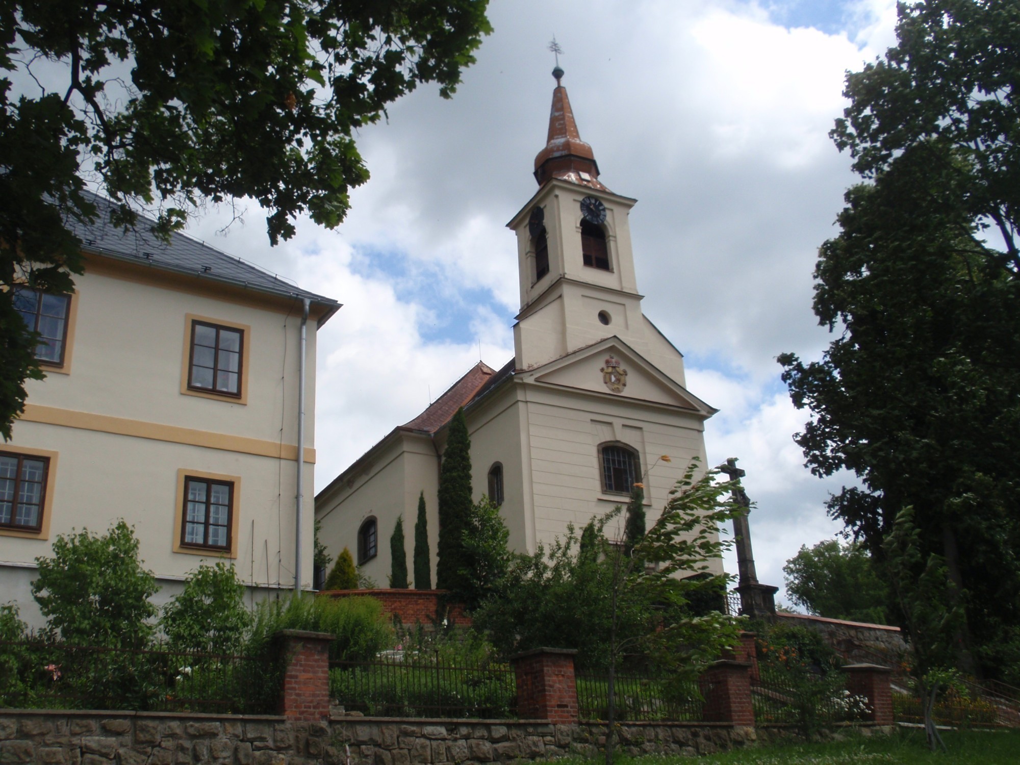 U kostela stojí také jednopatrová pozdně barokní fara, zbudovaná mezi léty 1770-1794.