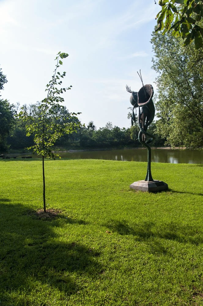Prozatím musí stačit jako náhrada stromu jedno z uměleckých děl, které krášlí okolí výletního zámečku. Strom větrné harfy autora Lubo Kristka, která je v sousedství „památného“ stromu. Dílo má evokovat vzpomínku na dávné obyvatele Pohanska. Kovové slzy na táhlech mají při závanech větru rozechvívat struny pod nimi, poutník se má zastavit, zaposlouchal se do tónů přírody a splynul s ní. Dílo je značně sureálné, jako celá tvorba umělce narozeného v Brně 1943. V letech 1968–1990 žil v Německu, po návratu do vlasti se usadil v Podhradí nad Dyjí. Zmíněné dílo je součástí Kristkovi podyjské glyptotéky. Umělcova díla tak můžeme sledovat od pramene Moravské Dyje až po soutok s Moravou.