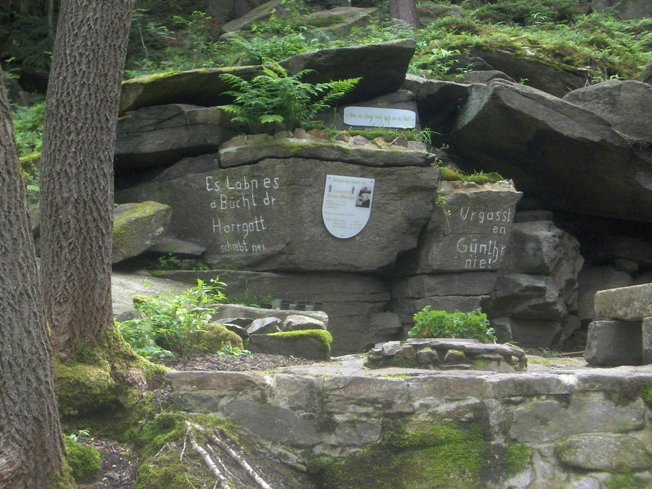 Ve skalnatém svahu nad potokem vybudovali jeho přátelé v roce 1937 jeskyňku, nazvanou Günterova světnička. Do okolních skalních bloků vytesali úryvky z jeho písní.