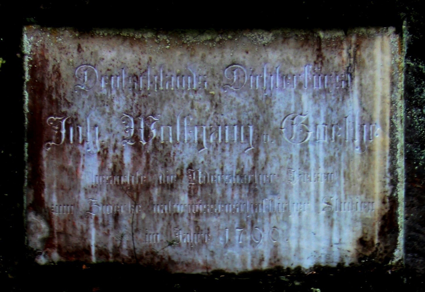 Deska na připomínku návštěvy Německého básníka Johanna Wolfganga Goetha v Adršpachu, v roce 1790 dále zde byla přidána jeho bista a česká tabulka.
