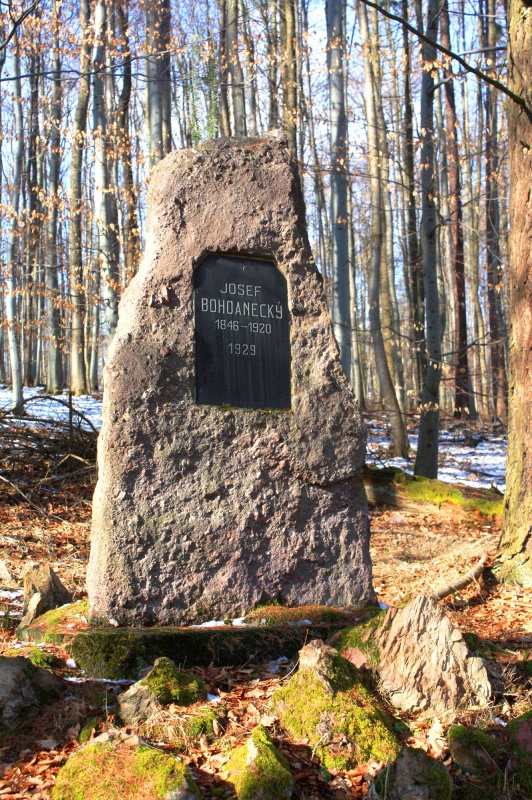 Památník se nachází na okraji rozlehlého palouku pod lesnickou chatou Jezírko na konci žlutě značené odbočky z rozcestí Mofloní studánka. Josef Bohdanecký (1846-1920) byl významný lesník, který působil řadu let jako vedoucí lesního úřadu na orlickém panství. Je tvůrcem české metody probírek lesních porostů, která měla značný ohlas a vzbudila velkou pozornost i u zahraničních lesníků. Poloha zdejšího památníku byla koncipována tak, aby byl od něho výhled do svitavského údolí. Tvoří jej slepencový balvan z Babího lomu, na němž je umístěna tmavá mramorová deska s nápisem. Je součástí tzv. Lesnického Slavína.