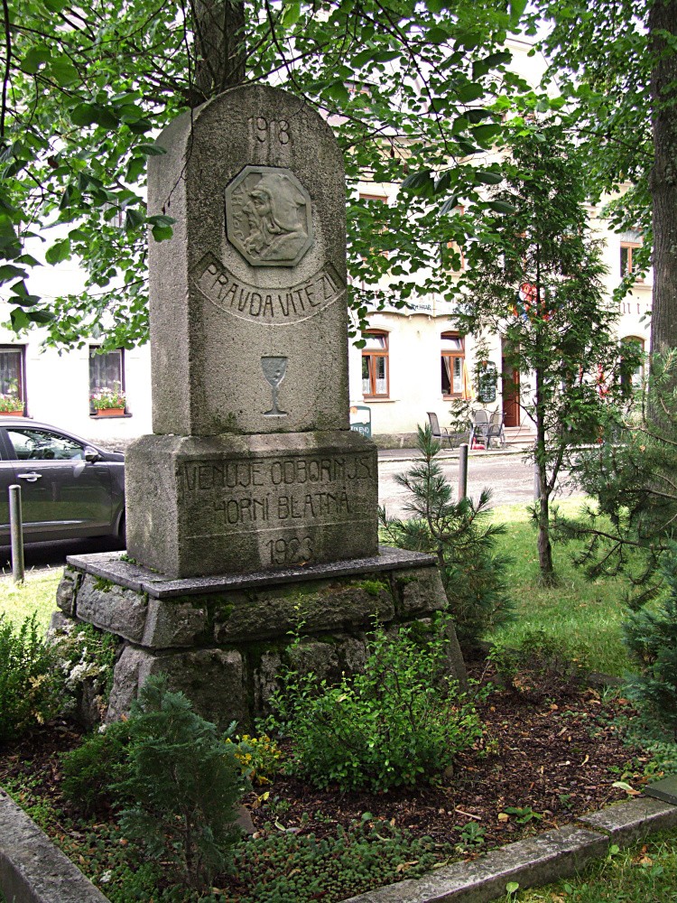 V roce 1923 nechal odbor Národní jednoty sokolské v Horní Blatné postavit na Blatenském vrchu Památník Mistra Jana Husa. Tento památník s reliéfem Jana Husa, letopočtem 1918 a vytesaným nápisem s věnováním však už dnes na vrcholu Blatenského vrchu nenajdeme. Byl přemístěn přímo do centra Horní Blatné a nyní stojí v parku u kostela sv. Vavřince na stejnojmenném náměstí.