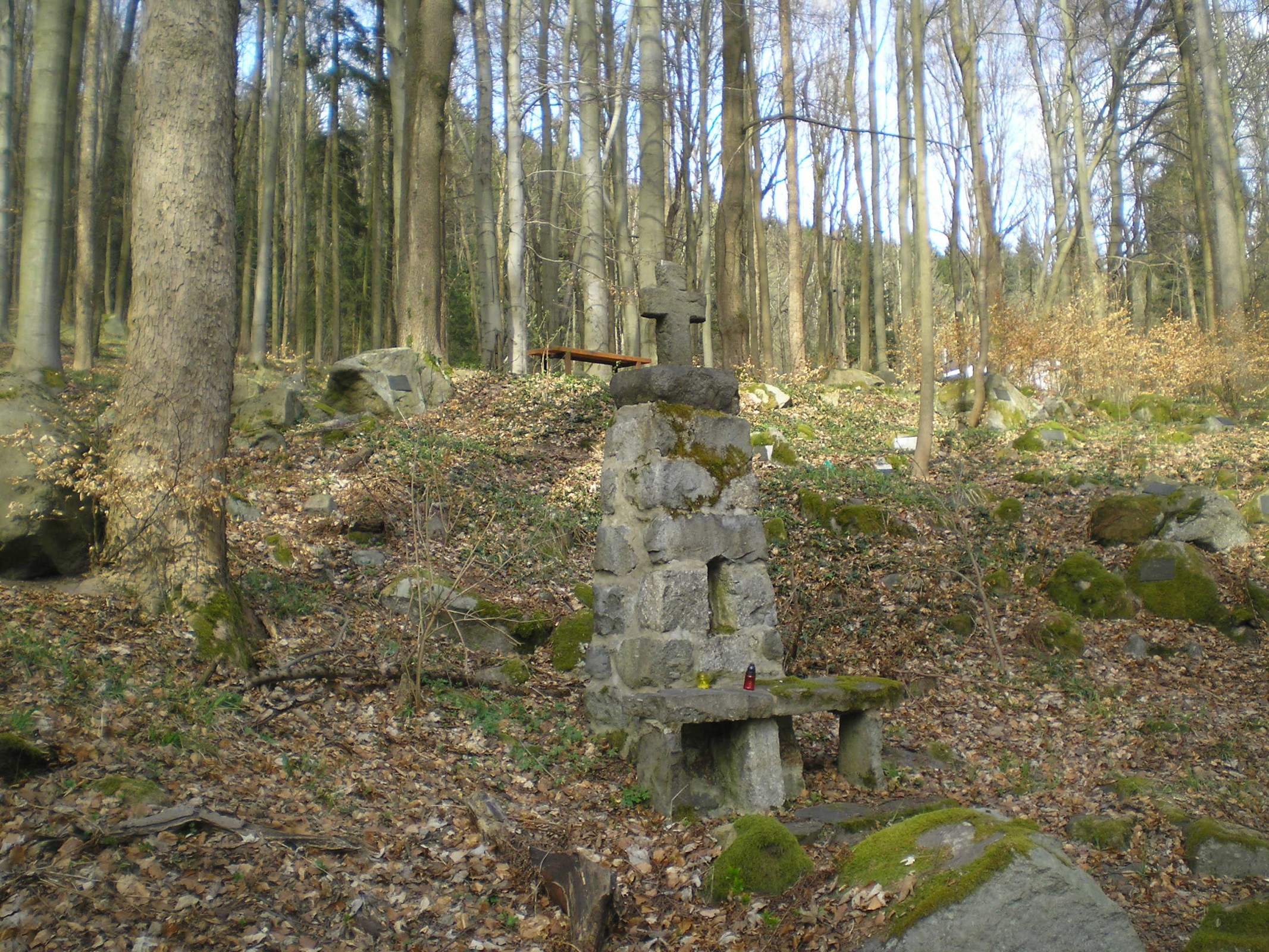 V lázeňském parku, přímo nad Kolonádou se nachází zajímavě řešený památník místním obětem I. světové války. Na kamenech roztroušených ve svahu jsou destičky se jmény všech, jejichž život byl ukončen na bojištích v letech 1914 až 1918. Celému prostranství dominuje kamenný kříž na kamenných základech.