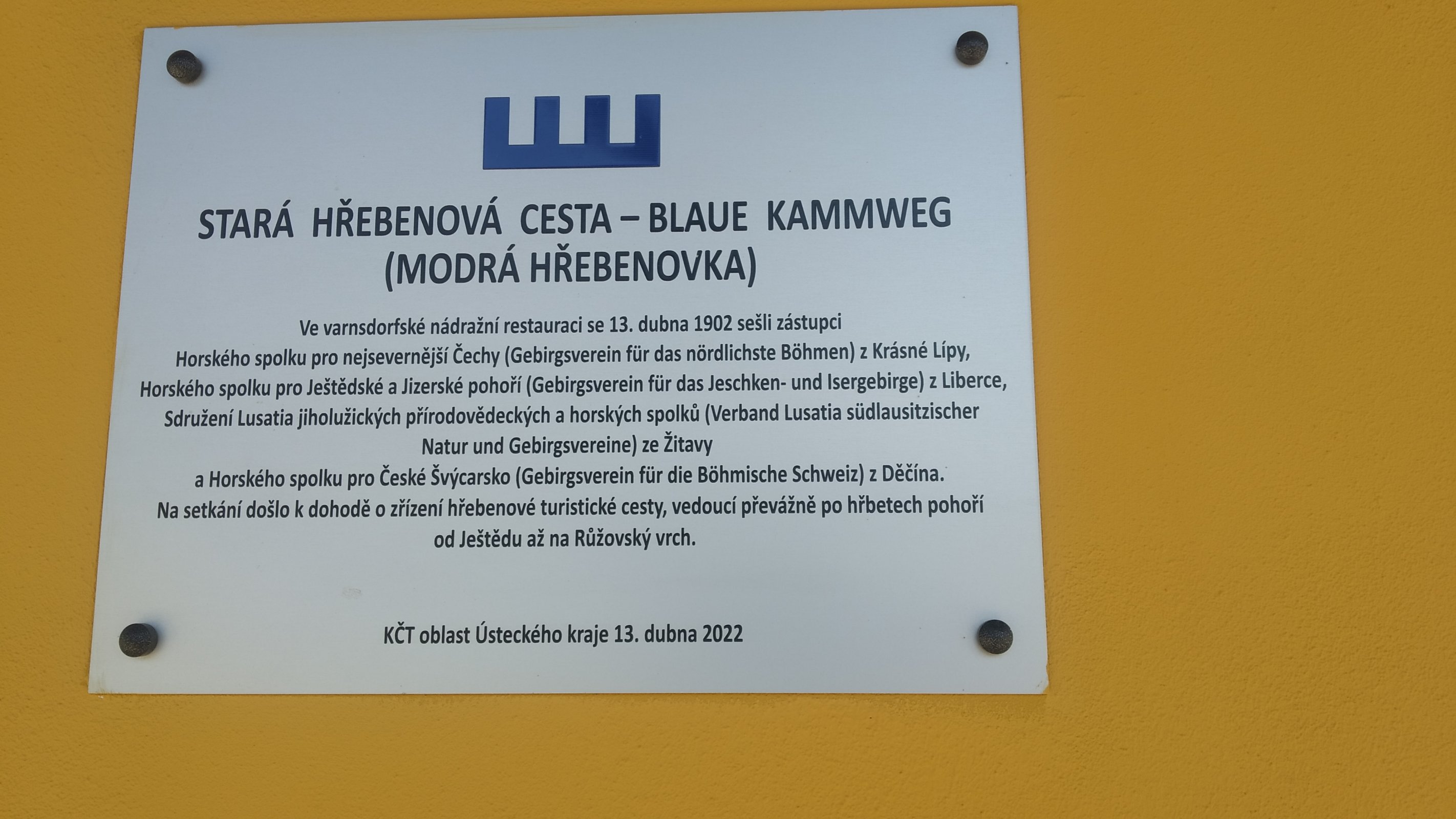 Na budově nádraží ve Varnsdorfu je osazena pamětní deska Staré hřebenové cesty.