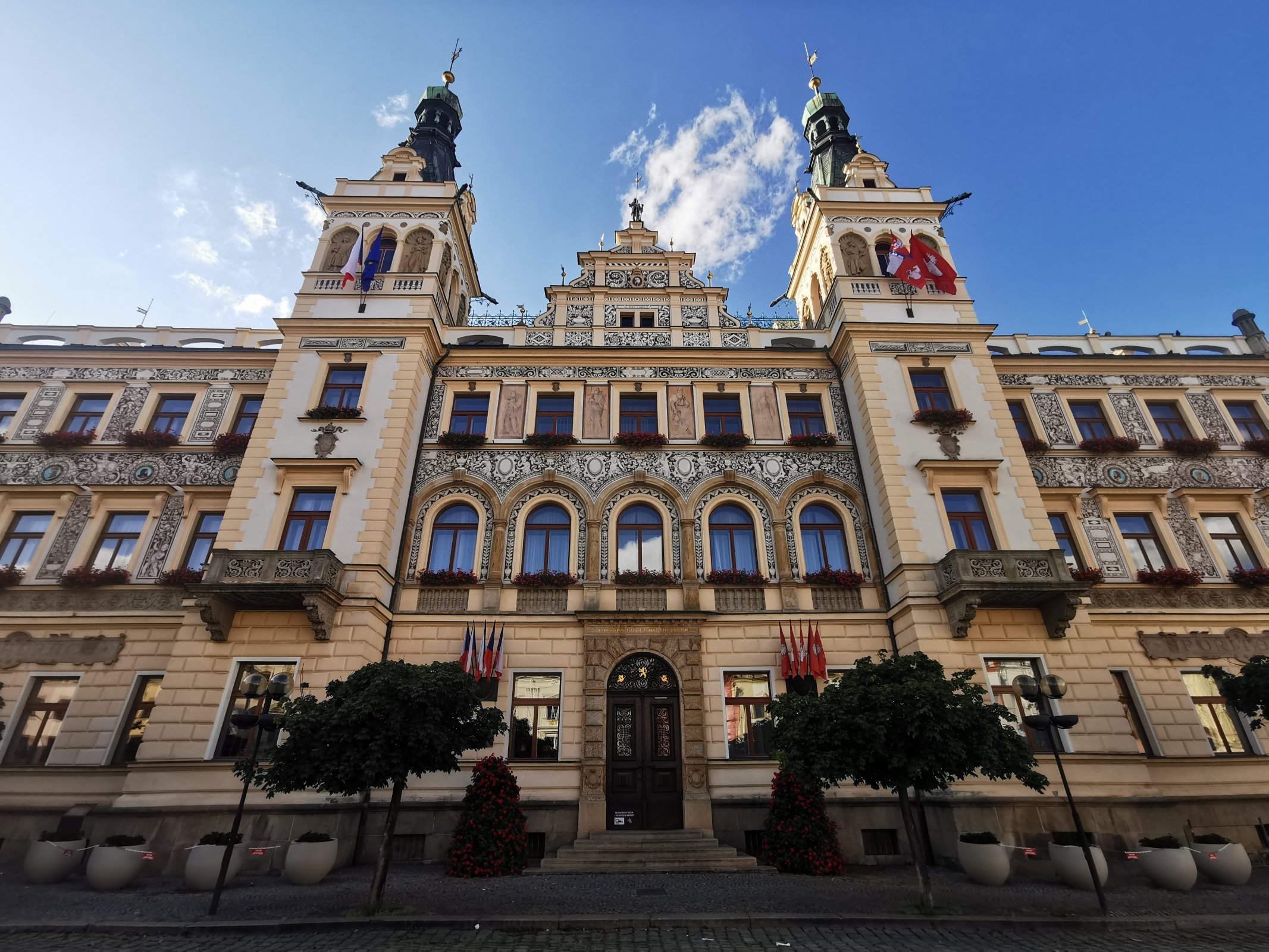 V podvečer po ubytovaní na Zámecké ulici sme sa vydali na prechádzku. Prechádzali sme po Zámecké ulici, ale nie smer zámok, ale na druhú stranu, kde prechádzala do Perštejnskej ulice. Naraz sa pred nami "vynorilo" námestie s krásnymi budovami s obnovenými fasádami. Najkrajšia bola budova radnice. V strede námestia stojí morový stĺp a pred mnohými budovami sú predzáhradky, kde sa dá najesť alebo osviežiť nápojom.