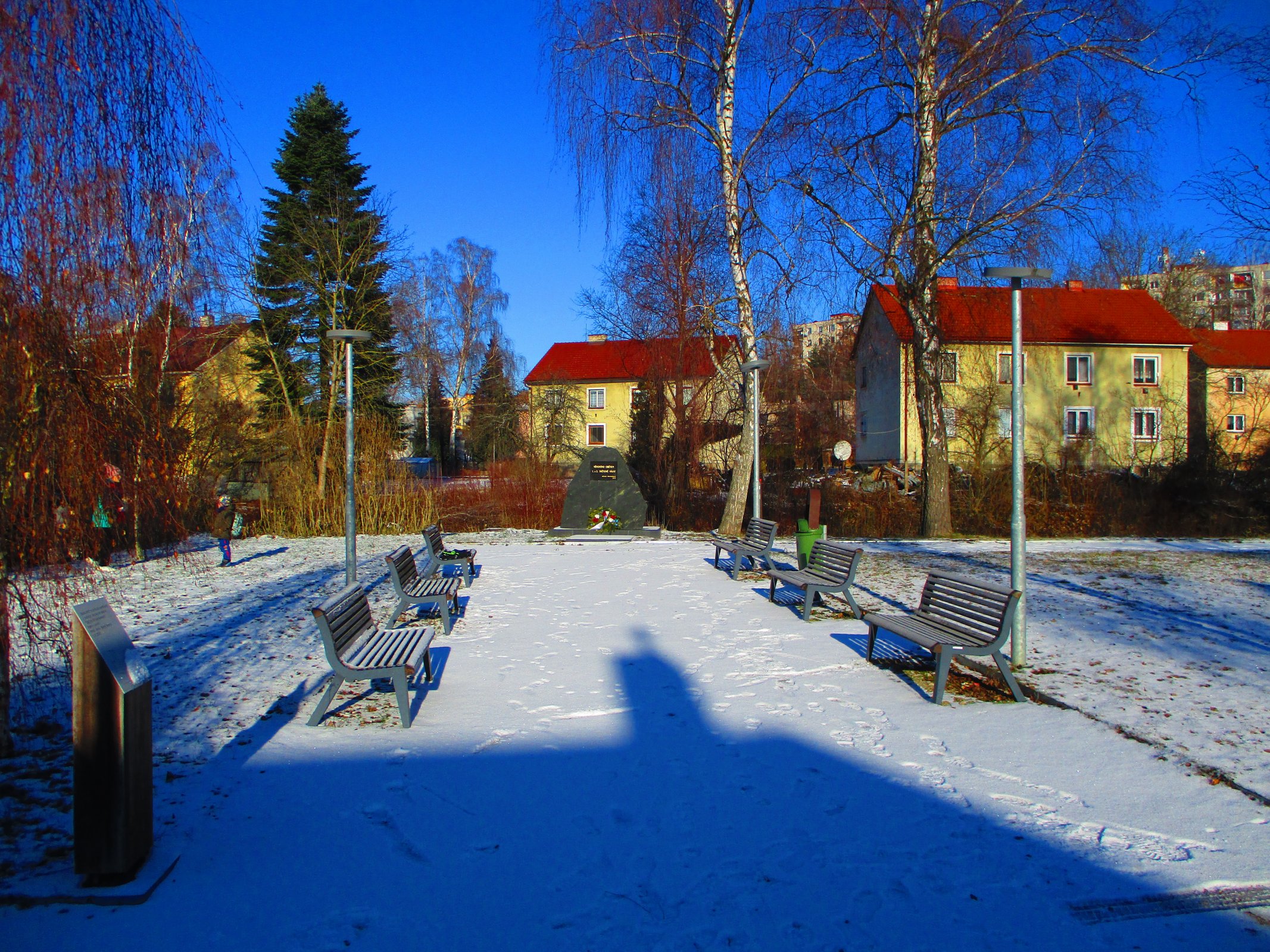 O 2 roky později byl do parku symbolicky umístěn pomník obětem obou světových válek, který byl zhotoven a instalován firmou SILNICE ČÁSLAV-HOLDING, a. s., Zbraslavice a nese prostý nápis: „VĚNOVÁNO OBĚTEM 1. A 2. SVĚTOVÉ VÁLKY MĚSTO TŘEMOŠNICE 2015“. K jeho slavnostnímu odhalení došlo 30. května 2015 (původní termín byl 5. května téhož roku), i když opravdovou škodou je to, že se na něm jména padlých, zemřelých a umučených z obou světových konfliktů neuvádějí.