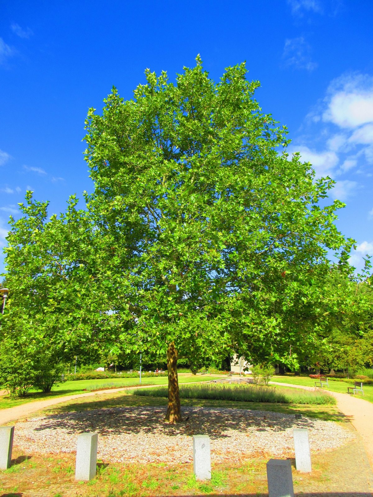 Nejvýznamnějšími pamětihodnostmi parku jsou po kostelu Nejsvětější Trojice: severní vstupní brána s nápisem „PAX VOBIS“ z roku 1835; východní vstupní brána z roku 1875; masivní litinový kříž z klabavských železáren z roku 1876; márnice z roku 1896, která byla vystavěna nákladem 2 031 K (v roce 1929 byly opraveny oba štíty a roku 2011 došlo k celkové rekonstrukci); Fitzova hrobka ve stylu vídeňské secese z roku 1900 (je spojována s Ottou Wagnerem), jež byla opravena v letech 2011-2012 a velké množství náhrobků, jež jsou umístěny podél bývalé hřbitovní zdi. Z moderních staveb stojí za zmínku: kamenná brána z tepelského trachytu z Plzeňské ulice od akademického sochaře Václava Fialy z Klatov s nápisy: „OMNIA VINCIT AMOR“ a „FESTINA LENTE“; fontána „Kamenná stuha“; trojitá dřevěná brána jako vstup od autobusového a železničního nádraží a dřevěná lavička „Labyrint“.