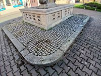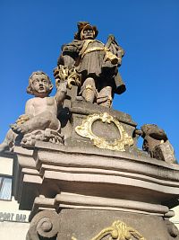 Svätý Florián a anjelíci sú umiestnení na zdobenom podstavci s bočnými volutovými ornamentami. Sochy a časti podstavca sú vyzdobené zlatou dekoráciou. Okolo sochy je bohato zdobené kamenné zábradlie.