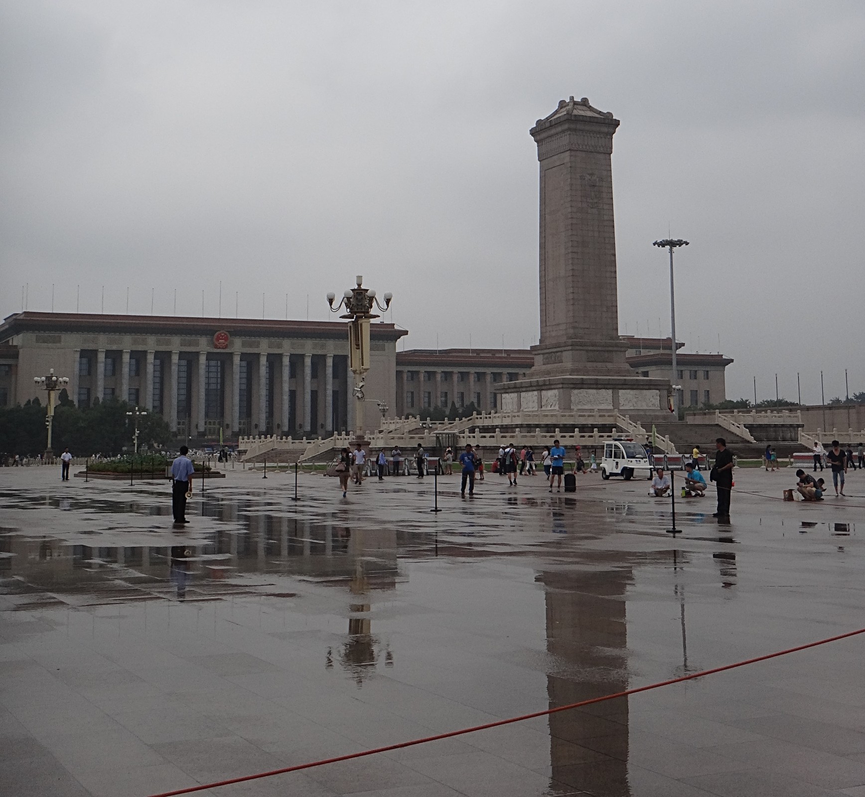 Zastavujeme se u památníku a zatím co nám průvodkyně povídá o historických událostech sledujeme výměnu pionýrské stráže u památníku. Naproti památníku směrem k Nebeské bráně se každý den ráno vztyčuje vlajka a večer zase sundává. I zde stojí stráž, ale vojenská a také probíhá její výměna. Pozorujeme pochodující vojáky a jejich rozmisťování na jednotlivá stanoviště. A pak již naše kroky míří k Bráně nebes a dále do Zakázaného města.