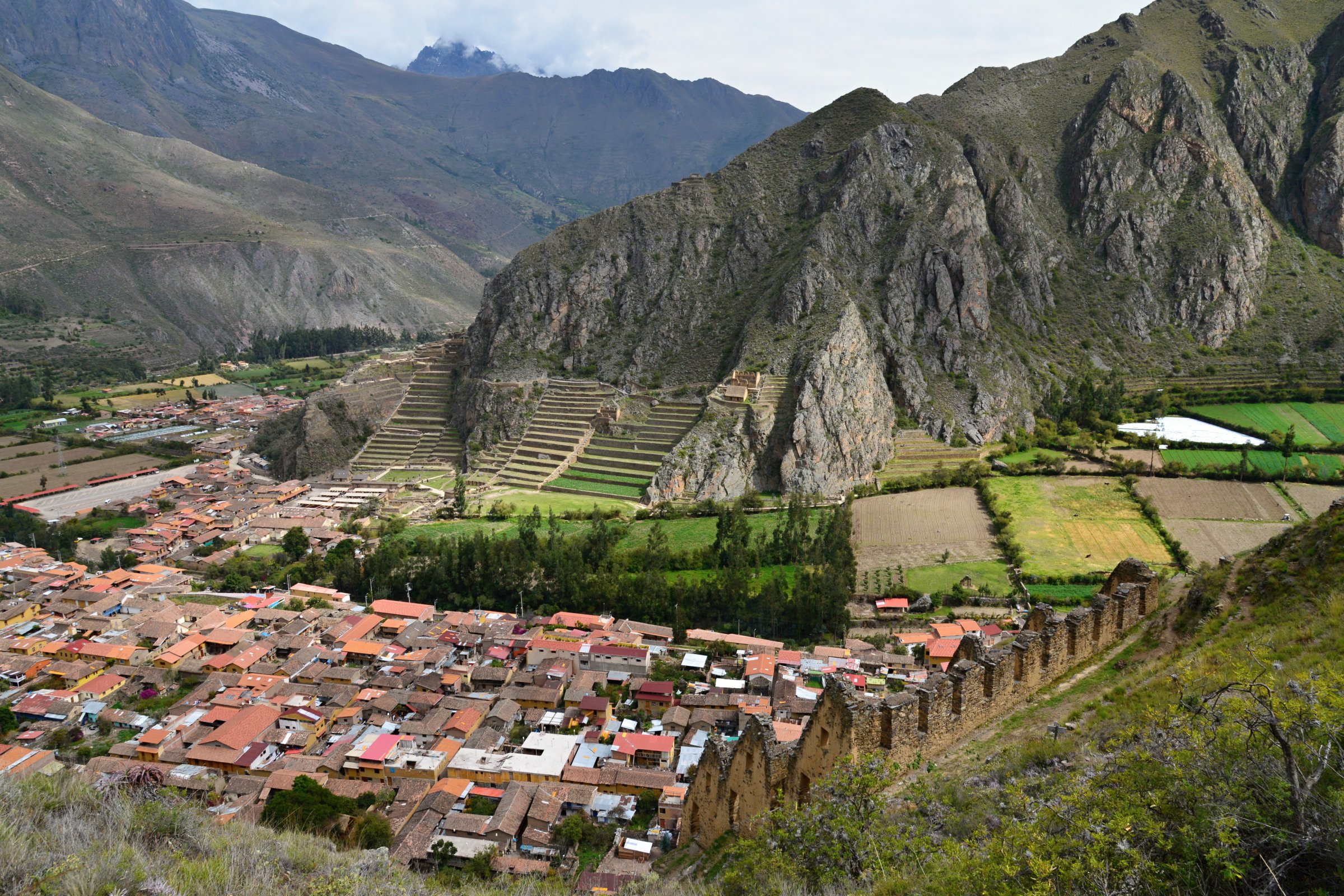 Peru - Ollantaytambo, výhled na hlavní archeologickou lokalitu od Pinkuylluna