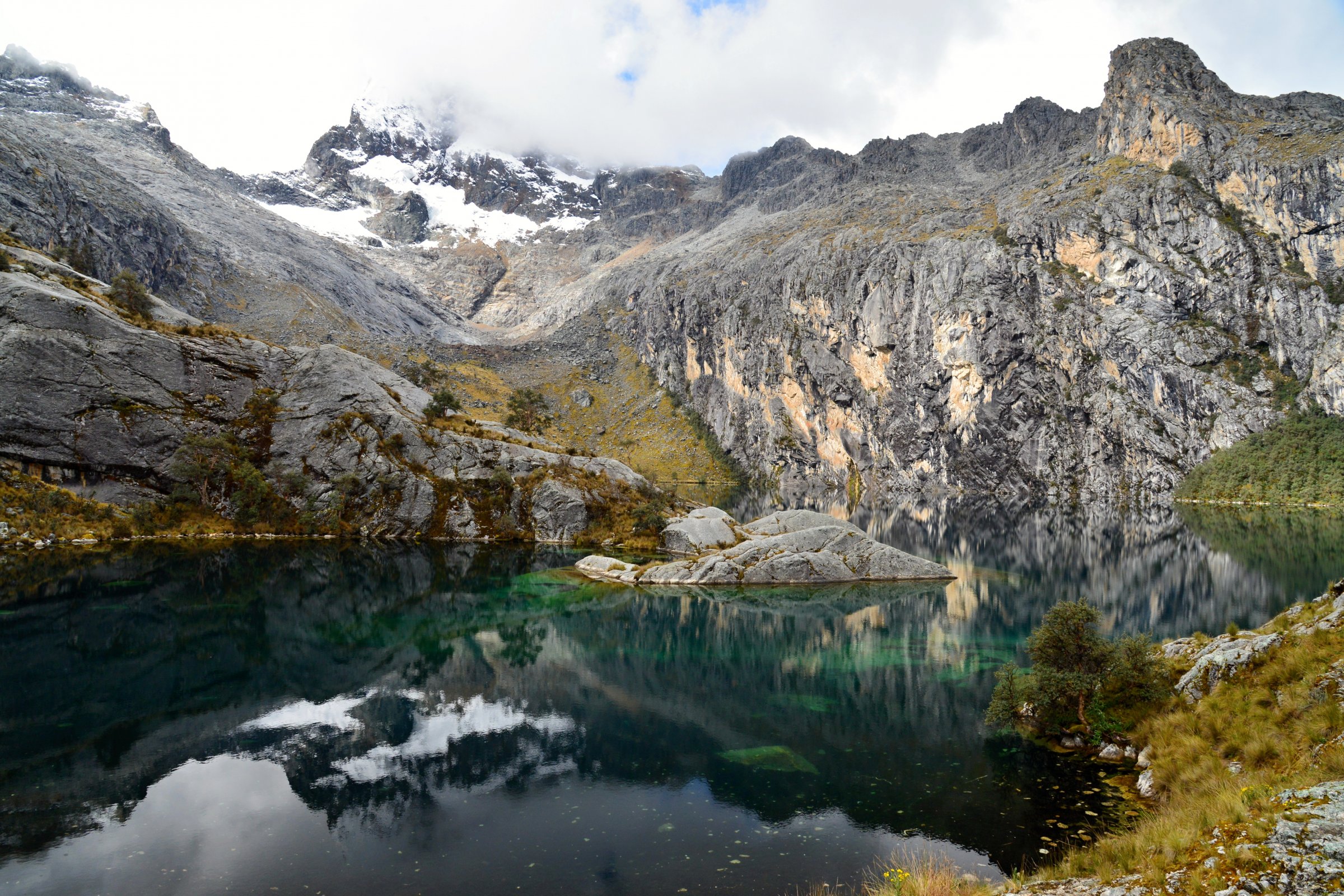 Laguna Churup se nachází v nadmořské výšce 4 450 m pod stejnojmennou horou Churup. Oblačnost nám nedovolila vidět místo v celé své kráse, ale chvílemi se přece jen mraky posunuly a ukázala se i hora se zasněženou čepicí a její odraz ve vodě. Z ledovce, který kdysi splýval až k hladině jezera, o čemž svědčí typicky vyhloubená roklina, zůstal jen malý zbytek pod vrcholem hory. Místo je opravdu krásné a za slunného dne přibude efekt modré oblohy a probarvenější hladiny v laguně.