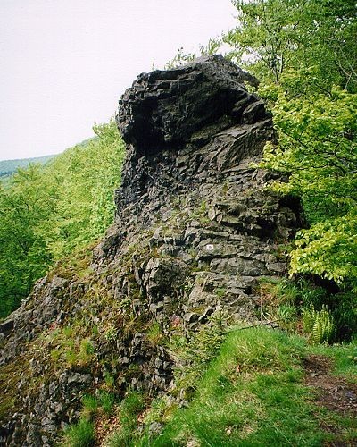 Na jihozápadním svahu kopce, asi 0,5 km nad Stožeckým sedlem je ještě jedna nevelká kupa se starým lomem, z jejíhož vrcholku vyčnívá čedičová skalka, zvaná Pětikostelní kámen (689 m). Z úpatí skalky je pěkný výhled přes údolí Lesenského potoka na Jelení kameny, Jedlovou a Tolštejn, do okolí Jiřetína pod Jedlovou a dále směrem k Rumburku. Jméno skály naznačuje, že by odtud měly být vidět věže pěti kostelů nebo kapliček v okolí. Normálně jsou však vidět jen čtyři: ve Studánce, Dolním Podluží, Jiřetíně pod Jedlovou a na Křížové hoře. Ze severozápadní strany kopce vybíhá k osadě Lesné protáhlý hřbet Čertovy Pláně a nedaleko od něj stojí u Pěnkavčí silničky lovecká chata Na milíři, v jejíž blízkosti je upravený pramen.