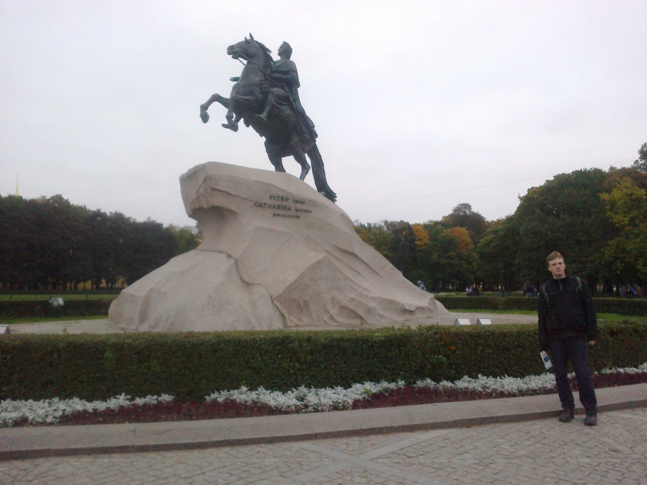 Uprostřed náměstí stojí nejslavnější pomník cara Petra I. (článek).