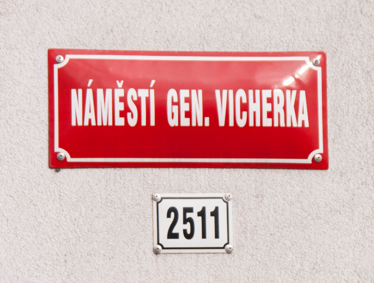 Od 24.6.2017 zdobí prostranství vele zdejší radnice vcelku nenápadný, ale originálně řešený pomník, který připomíná zdejšího rodáka, generála Ing. Aloise Vicherka. Autorem je sochař Mgr. A.M. Kuchař. Vcelku jednoduchý pomník se skládá ze dvou částí, mírně rozšiřující se hranolová část nese základní údaje o zdejším rodákovi, vystupující oblá část (připomíná směrovku letadla) pak poukazuje na fakt, že Alois Vicherek byl i průkopníkem čs. letectví.