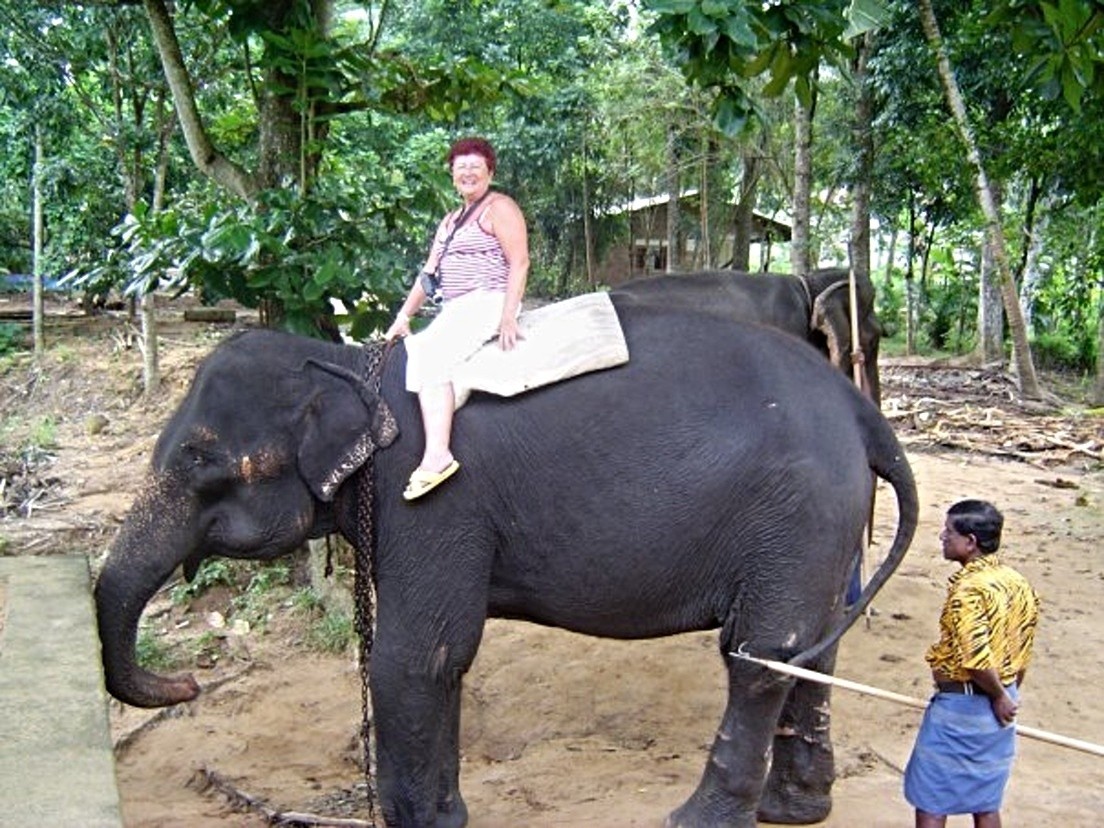 Říká se, že nejkrásnější Pohled na světě je ze hřbetu koně. Již jsem vyzkoušela jízdu na oslu, koni, velbloudu i slonu. Na slonu jsem jela v Thajsku, ale to jsme jely s kamarádkou a ještě v kovovém "koši". Dnes jsme ve vesnici Pinnawala, která se nachází v centrální Sri Lance nedaleko města Kandy u řeky Maha Oya. V Pinnawala začínáme hned projížďkou na slonu, ale tentokrát sedím přímo na jeho hřbetu. I když slona vede mahout, je to nádherný pocit, jet na takovém majestátním zvířeti a pozorovat okolní svět z výšky. Po projížďce jdeme ke stádu slonů, kde jste v jejich bezprostřední blízkosti. O bezpečnost návštěvníků se stará mahout a odhání vás, když jste moc blízko. Zde si sice můžete udělat fotografie, ale je zakázáno filmovat. Pod nedalekým přístřeškem si pak za menší poplatek můžete nakrmit z láhve Malé slůně a dále pokračovat a dívat se na jejich koupání v řece.