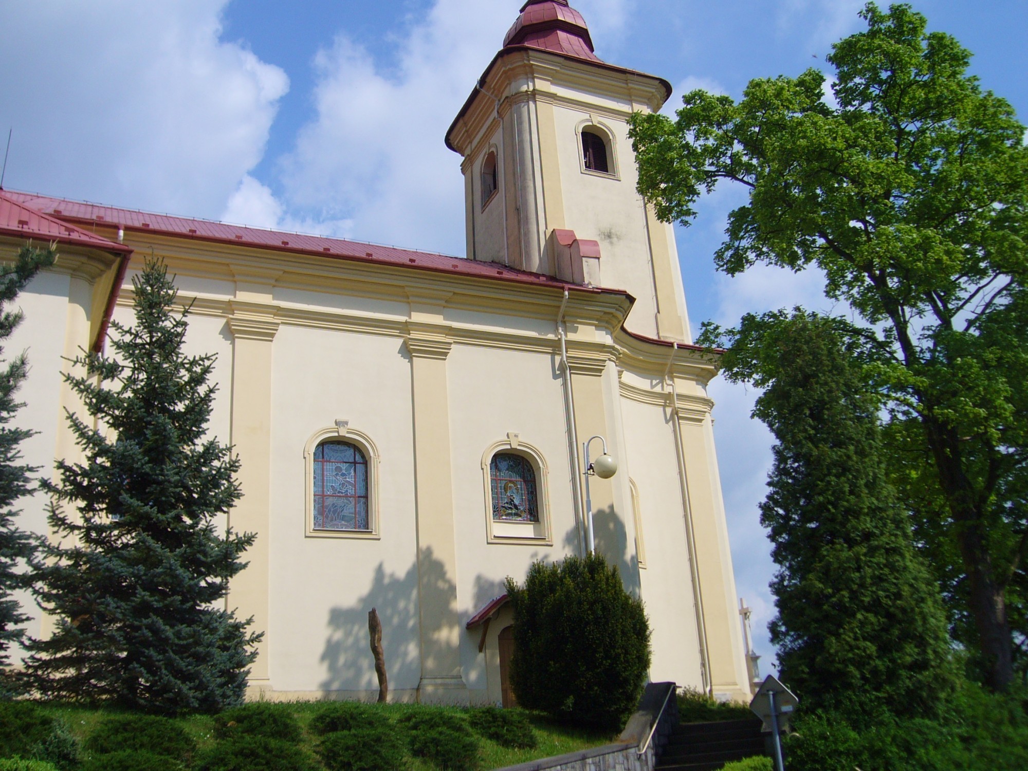 Dnešní barokní kostel byl vystavěn nad obcí na konci 18. století