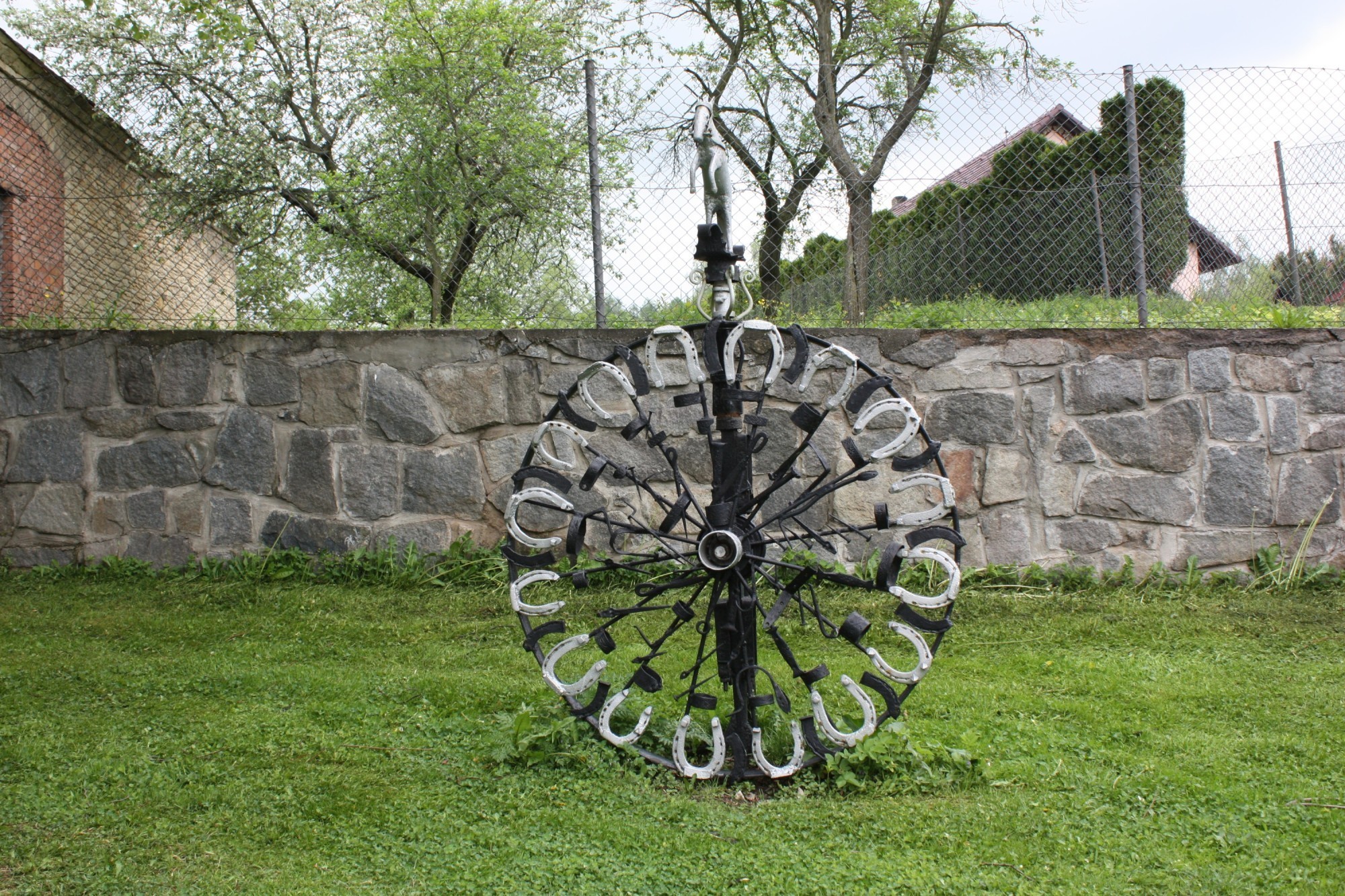 Při průjezdu obcí Miřetice směrem od pietního místa Léžáky nás pol evé straně zaujme na travnaté ploše umístěná kovová plastika kováře a podkováře Františka Uchytila z Miřetic. Jedná se o stylizované železné kolo vyzdobené 16 podkovami a jinými kovovými předměty z kovářské dílny mistra Uchytila.