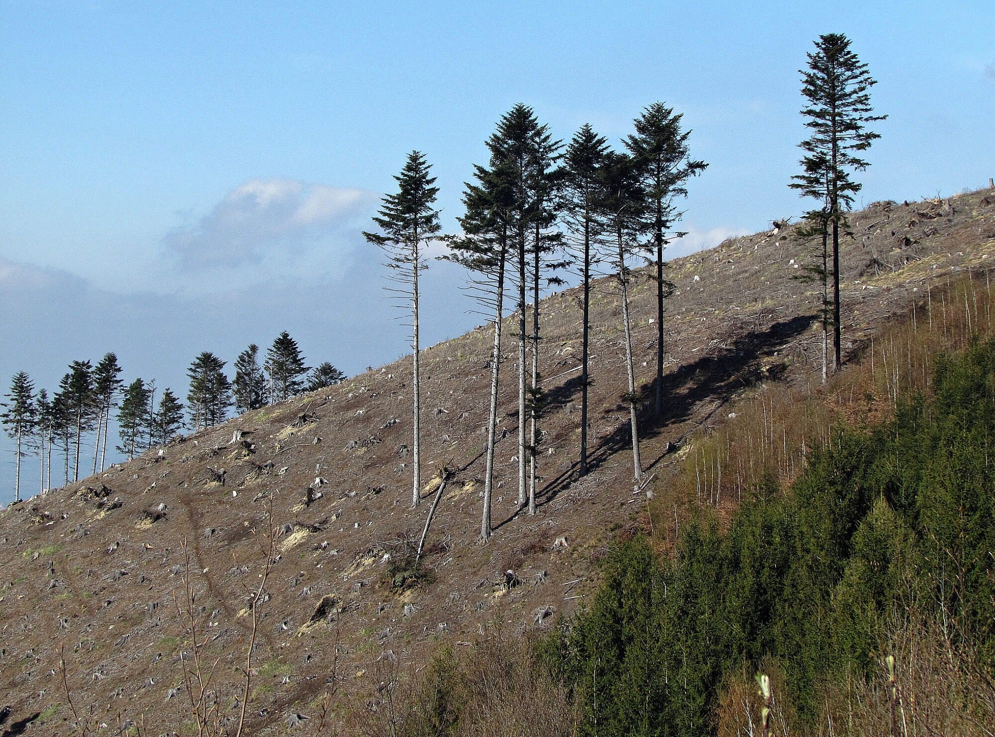 Pokud putujeme na Hostýn po modré tur.trase od Skalného, čeká nás za rozcestím Bukovina nejprve táhlé a později i poněkud strmější závěrečné stoupání. Kýžený odpočinek nabídne lavička u upravené studánky, nacházející se 200 metrů pod rozcestím Hostýn – Pod Valy. Tahle studánka nám bohužel ale vody nedá – voda z ní pouze pokapkává a navíc ji ani není do čeho nabrat. Možná je na vině ztráty blahodárné tekutiny ten okolní přehnaně odlesněný terén. Sám zdroj se sice nachází pod prořídlým hvozdem, ale pod cestou už je stráň hluboko dolů do údolí vymýcena. Což sice poutník ocení, neboť se mu od stávkujícího pramene otevře pohled daleko do okolní krajiny, jenže je to kvůli masivním plochám holin výhled hodně depresivní. Jako pěsť na oku pak působí jihozápadní odnož „svaté hory“, která je lesního porostu zbavena docela! Něco tak smutného se jen tak nevidí… a docela věřím odborníkům, kteří tvrdí, že naše lesy díky masivnímu a někdy až zbytečnému plošnému kácení ztratily svůj prvotní význam.