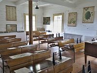 Menší školní třída je vybavena celodřevěnými lavicemi z Pěkova a Dolních Vernéřovic, velká školní třída v podobě z 30. let minulého má mobiliář ze zrušené školy v Dolních Vernéřovicích. Byt v patře je zařízen převážně nábytkem ze sbírek Muzea Náchodska a nádobím, oblečením a prádlem ze soukromých sbírek.
