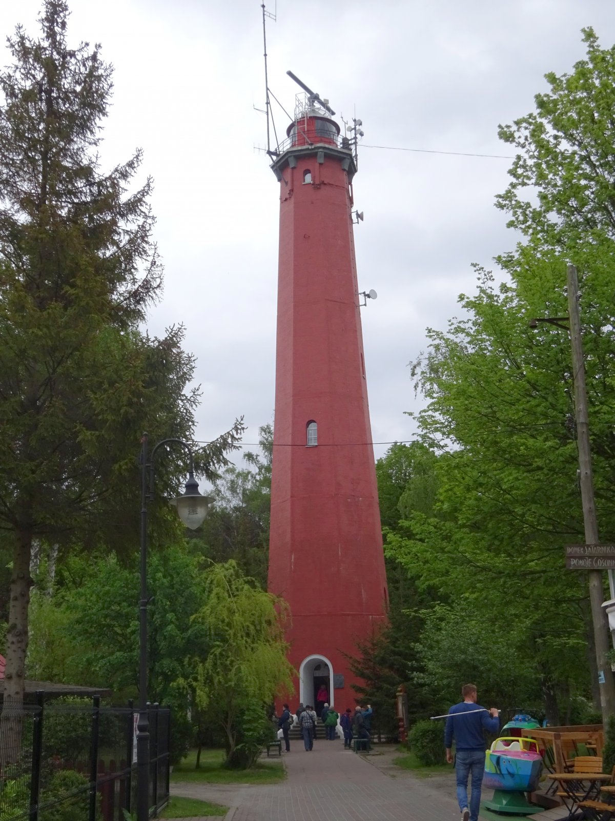 Ráno po snídani jsme si z Wladyslawowa, kde jsme přespali, zajeli na poloostrov, na jehož konci se tyčí maják v Helu. Původně zde stál 40 m vysoký maják, vybudovaný v letech 1806-27, který polské vojsko 19. září 1939 po vypuknutí 2. světové války zbouralo. Na jeho místě v době německé okupace, v r. 1942 začali stavět maják nový. Ten je 41,5 m vysoký s elektrickým světlem. V blízkém okolí jsou umístěny budovy pro strážce majáků a také hospodářské budovy - sklady, prádelny, kamenné sklepy, sklepy-sklady paliva a munice a také signální stožáry. Roku 1928 zde na návštěvu zavítal maršál Józef Pilsudski, což připomíná pamětní deska. V r. 2001-2 prošel maják rekonstrukcí a byl nabarven na červeno, nahoře je vyhlídka. Razítko majáku mám, ale turistickou vizitku tak jako na mnoha jiných místech neměli (i když je vydaná). Na Baltském pobřeží je možno navštívit 13 majáků, ve kterých uvidíte různé světelné aparáty, od velkých cylindrů až po reflektory. Jsou zde zajímavá místa na fotografování i filmování, můžete získat Odznaki Turystyczne Milośnika Latarń Morskich "Bliza" (odznak milovníka majáků - Bliza).