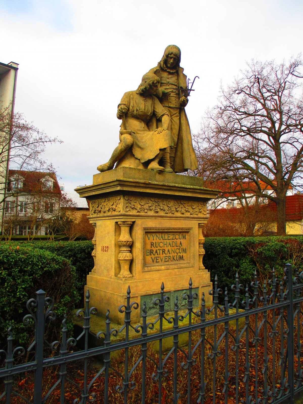 Základní kámen pomníku byl slavnostně položen 31. srpna 1883 na křižovatce za Veselkou před synagogou. 7. září 1883, den před odhalením, byla v