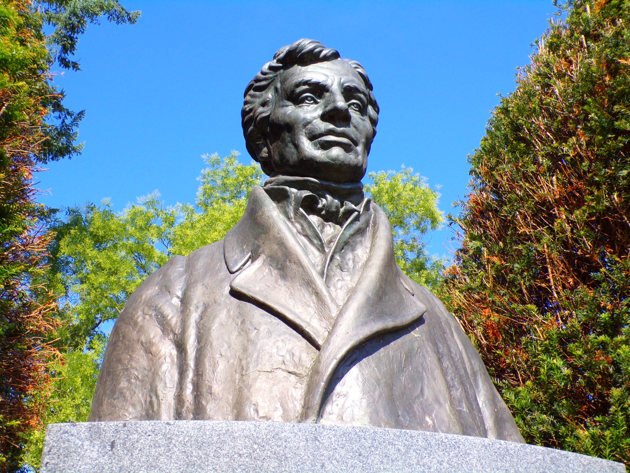 Tato bronzová busta od akademického sochaře Josefa Václava Škody z Hradce Králové, která je umístěna na podstavec z hladké žuly, byla odevzdána okrašlovacím spolkem za zvuků státní hymny do ochrany města. K jeho provedení došlo z iniciativy a zásluhou starosty města a zdejšího továrníka Rudolfa Vitouška. Následujícího dne pak byly na Orebu ještě uspořádány zádušní bohoslužby na památku tohoto velikána. Od té doby pomník zdobí Heldův park (s výjimkou německé okupace, kdy byla busta sňata a vrátila se na své místo až v roce 1945), který byl poprvé upraven roku 1955 a naposledy prošel celkovou revitalizací v roce 2015.