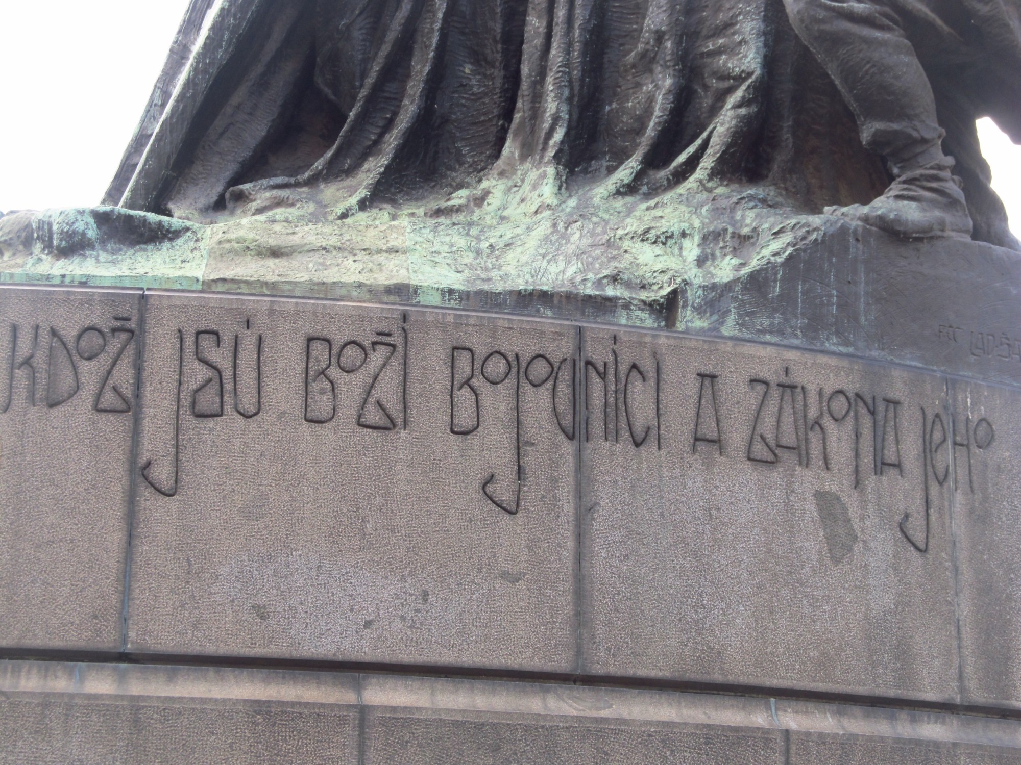 Nápis na pomníku mistra Jana Husa na Staroměstském náměstí v Praze  autor: textilnik
