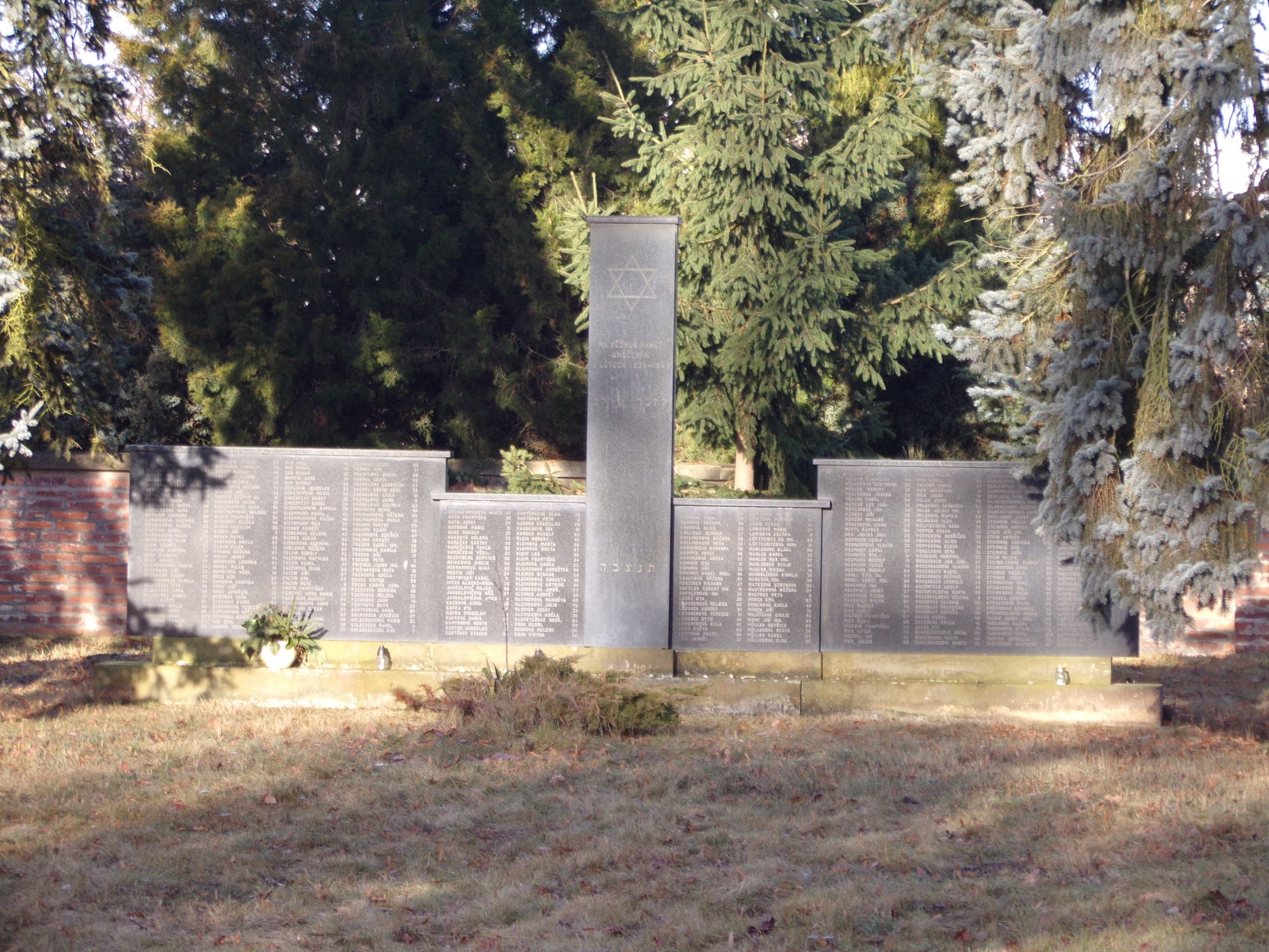 Od té doby se tedy na královéhradeckém židovském hřbitově tyčí pomník, skládající se z výškově odstupňovaných desek z černé žuly, v jejichž středu stojí vysoký mramorový pylon s Davidovou hvězdou v horní části a nápisem: „NA VĚČNOU PAMĚŤ UMUČENÝM V LETECH 1939-1945“. Pod tímto nápisem je hebřejsky uvedeno „LA ZACHAR OLAM“ (věčná záře) a dole na pylonu „TNCH“, což je zkratka pro Starý zákon. Na obou stranách je uvedeno 376 jmen židovských obětí („ADLER ALBERT 65, AGULÁR RUDOLF JUDr. 48, AGULÁROVÁ ZDEŇKA 47, AGULÁR JIŘÍ 17, AGULÁROVÁ EVA 16, ALTEROVÁ RŮŽENA MUDr. 44, ARNOLD PAVEL 60, ARNOLDOVÁ EMILIE 53, BANDLER JOSEF 69, BANDLEROVÁ BERTA 49, BANDLEROVÁ HANA 20, BARBIER ZIKMUND 68, BARBIEROVÁ HERMÍNA 68, BARBIEROVÁ ELIŠKA 33, BARBIER KAREL 38, BARBIEROVÁ HILDA 35, BARBIEROVÁ OLGA 2, BAUM ZDENĚK 32, BAUMOVÁ HERMÍNA 30, BECK RICHARD 74, BECK JULIUS 27, BECKMANNOVÁ MARTA 52, BECKMANN JIŘÍ 25, BECKMANN FERRY 23, BECKMANNOVÁ GIZELA 54, BEJKOVSKÝ OTA 54, BEJKOVSKÁ ANNA 49, BEJKOVSKÝ KAREL 17, BERAN EVŽEN 64, BERANOVÁ EMILIE 60, BERANOVÁ ANNA 68, BERANOVÁ OLGA 59, BERANOVÁ VLASTA 26, BERANOVÁ MARIE 23, BERANOVÁ VILÉMA 67, BERANOVÁ MARKÉTA 53, BERAN RUDOLF 44, BERANOVÁ ILLONA 33, BERAN RUDOLF 60, BERGEROVÁ RŮŽENA 72, BERGER JIŘÍ 42, BERGER ŠTĚPÁN Dr. 41, BERGEROVÁ IRÉNA 29, BERGMANNOVÁ OLGA 70, BERGMANNOVÁ VALERIE 47, BLOCH FRANTIŠEK 50, BLOCHOVÁ ELIŠKA 48, BLOCH LADISLAV 20, BLOCH JIŘÍ 7, BLOCH PAVEL 42, BLOCHOVÁ PAVLA 32, BLOCH MILÁN 16, BOKOVÁ RŮŽENA 67, BONDY JOSEF 45, BONDYOVÁ LUDMILA 43, BONDY MILÁN 14, BONDYOVÁ VĚRA 10, BROD LEO 53, BRODOVÁ HEDVIKA 53, BROD JIŘÍ 21, BROD JINDŘICH 17, BRODOVÁ SOŇA 15, ČERVINKA KAREL 63, ČERVINKOVÁ TEREZIE 61, ČERVINKOVÁ RŮŽENA 34, ČERVINKA ERICH 25, DUB EMIL 66, DUBOVÁ TEREZIE 58, DUB EMIL 18, DUB KAREL 19, DUB OSKAR 58, DUBOVÁ JANA 70, DUX RUDOLF 64, ECKSTEIN JAROSLAV 53, ECKSTEINOVÁ MARIE 56, EHRENFEST HARRY 26, EHRENFEST KAREL 24, EISENMANNOVÁ KAMILA 70, EISENMANN KAREL 45, EISENMANNOVÁ ELIŠKA 40, EISENMANN MAX 37, EISNER ARNOŠT 60, EISNEROVÁ HELENA 43, EISNER OSKAR 62, EISNEROVÁ HERMÍNA 64, ENOCHOVÁ RŮŽENA 65, FALTIN RUDOLF 72, FALTINOVÁ MATYLDA 68, FALTIN KAREL 42, FALTINOVÁ OLGA 33, FALTIN JIŘÍ 37, FALTIN OTA 37, FALTIN RENÉ 9, FANTA FRANTIŠEK 29, FANTOVÁ ANNA MARIE 27, FELDMANN RUDOLF 62, FELDMANNOVÁ ANNA 52, FELDMANN OSKAR 32, FISCHER MAX 67, FISCHEROVÁ IRMA 58, FISCHEROVÁ OLGA 59, FISCHER PAVEL 37, FLAŠNER JOSEF 80, FRÄNKL OTA 71, FRÄNKLOVÁ BERTA 60, FRÄNKL ERVÍN 62, FRÄNKLOVÁ LEOPOLDA 57, FRÄNKL ERVÍN JUDr. 36, FRÄNKLOVÁ LILLA 31, FRÄNKLOVÁ JANA 5, FRÄNKLOVÁ ZDEŇKA 42, FREIMANN DAVID 51, FREIMANNOVÁ RŮŽENA 45, FREIMANNOVÁ PAVLA 11, FREUND GUSTAV 75, FREUND VILÉM 52, FREUNDOVÁ ZDEŇKA 47, FREUND ARNOŠT 19, FREUND KAREL ING. 49, FREUNDOVÁ KAMILA 39, FREUND JIŘÍ 17, FREUND PETR 11, FRIEDER JAKUB ING. 44, FRIŠMANOVÁ RUTH 18, FUCHSOVÁ ADELA 72, FUCHS VIKTOR 59, FUCHS LUDVÍK JUDr. 61, FUCHSOVÁ HERMÍNA 49, FUCHSOVÁ HELENA 25, FUCHSOVÁ JANA 19, FÜRTHOVÁ RUTH 22, GÄRTNEROVÁ ANNA 90, GOLBERGER JINDŘICH 37, GOLBERGEROVÁ MARIE 32, GOLBERGER PAVEL 11, GOLBERGEROVÁ EVA 7, GOLDSCHMIED PAVEL ING. 58, GOLDSCHMIEDOVÁ MARTA 47, GUTH FRANTIŠEK 38, GUTH JOSEF 37, GUTHOVÁ MARIE 31, HAAS RUDOLF 33, HAASOVÁ HELENA 22, HAMÁČEK GUSTAV 70, HAMÁČKOVÁ PAVLA 63, HAMÁČKOVÁ VĚRA 22, HASENBERG BERTOLD 68, HEIMEROVÁ EMILIE 56, HERMANNOVÁ OLGA 63, HERZIG JIŘÍ 24, HOSTOVSKÝ KAREL 51, IPPEN ALBERT MUDr. 78, JANKELOVIČ MAJER 40, JANKELOVIČOVÁ RŮŽ. 33, JANKELOVIČOVÁ JITKA 4, KAFKOVÁ ANNA 58, KAFKA OTA 31, KAFKA MIROSLAV 25, KAFKOVÁ MARIE 52, KANTOROVÁ BERTA 61, KANTOR JAROSLAV 31, KANTŮREK OTAKAR 65, KANTŮRKOVÁ ANNA 64, KANTŮRKOVÁ OLGA 28, KANTŮREK PETR 2, KAUDER STANISLAV 73, KAUDEROVÁ IDA 61, KAUDER RUDOLF 62, KLEIN ROBERT 42, KLEINOVÁ MARTA 36, KLEINOVÁ BERTA 67, KLEIN LEO 56, KLEIN FRANTIŠEK 24, KLEINOVÁ HANKA 22, KLEINEROVÁ ARNOŠTKA 80, KLEINER OTAKAR 59, KLEINEROVÁ AUGUSTA 48, KLEINEROVÁ ANTONIE 44, KLEINEROVÁ JINDŘ. 77, KLEINER ARNOŠT 48, KLEINEROVÁ MARKÉTA 43, KLEINEROVÁ JULIE 70, KLEINER JOSEF 32, KLEINEROVÁ ADÉLA 30, KLEPETÁŘOVÁ BEDŘ. 64, KOHN KAREL 68, KOHNOVÁ HELENA 60, KOHN VIKTOR, KOHNOVÁ BEDŘIŠKA 54, KOHNOVÁ VĚRA 25, KOHNOVÁ RŮŽENA 54, KOHNOVÁ ALICE 23, KOLLINER BEDŘICH 53, KOLLINEROVÁ RŮŽENA 50, KOLLINEROVÁ HEDA 23, KOMINÍKOVÁ BARBORA 76, KOMINÍK JOSEF 60, KOMINÍKOVÁ ADÉLA 52, KOMINÍK OTA 31, KOMINÍK JIŘÍ 23, KOVANIC KAREL MUDr. 49, KRAUSOVÁ RŮŽENA 63, KREITNER RICHARD 27, KUFFLER ROBERT ING. 41, KUFFLEROVÁ IDA 34, LEDEČ OTA 26, LEDEREROVÁ HELENA 59, LEDERER AUGUST 61, LEDEREROVÁ TEREZIE 51, LEDERER OTTO 45, LEDEREROVÁ ELLA 42, LEVÁ KVĚTA 53, LEVITOVÁ FRANT. 64, LÍPA ARNOŠT 47, LÖWITOVÁ ELIŠKA 63, LÖWYOVÁ HERMÍNA 60, LURIE OSKAR 35, LURIEOVÁ MARIE 37, LURIEOVÁ ZDEŇKA 6, LÜFTSCHITZ ED. ING. 59, LÜFTSCHITZOVÁ IRMA 51, MAHLEROVÁ KLÁRA 60, MAHLER KAREL 23, MAHLER MAX ING. 57, MAHLEROVÁ OTILIE 54, MAHLER MICHAL 19, MANDELÍKOVÁ KAMILA 58, MARKOVÁ IDA 56, MATESOVÁ GERTRUDA 32, MAUTNEROVÁ RŮŽENA 37, MAUTNER PETR 8, MINICH EMIL 63, MINICHOVÁ KARLA 49, MINICH JIŘÍ 15, MOJŽÍŠOVÁ EMILIE 76, MUNK JIŘÍ ING. 35, MÜLLER BEDŘICH 68, MÜLLEROVÁ BERTA 58, MÜLLER KAREL 23, MÜLLEROVÁ OLGA 60, MÜLLER OTA 27, MÜLLER STANISLAV 54, MÜLLEROVÁ GERTRUDA 50, MÜLLER ROBERT 27, MÜLLEROVÁ JOSEFA 52, MÜLLER KAREL 54, MÜNZER LEO JUDr. 54, MÜNZEROVÁ IDA 44, MÜNZER JIŘÍ 20, MÜNZER RICHARD 60, MÜNZEROVÁ VILMA 58, NETL ALFRÉD 64, NEU JULIUS JUDr. 56, NEUMANN ADOLF 68, NEUMANNOVÁ VLASTA 30, NEUMANN KAREL 27, NEUMANN OTA 51, NEUMANN RUDOLF 19, NEUMANN TOMÁŠ 15, NEUMANN RUDOLF 63, NOHEL EMIL Dr. 57, NOHEL KAREL ING. 60, NOVÁKOVÁ IDA 65, PACOVSKÝ JOSEF 57, PACOVSKÁ FLORA 64, PACOVSKÁ VILMA 92, PICK RUDOLF 78, PICK ADOLF 67, PICKOVÁ FRANTIŠKA 67, 