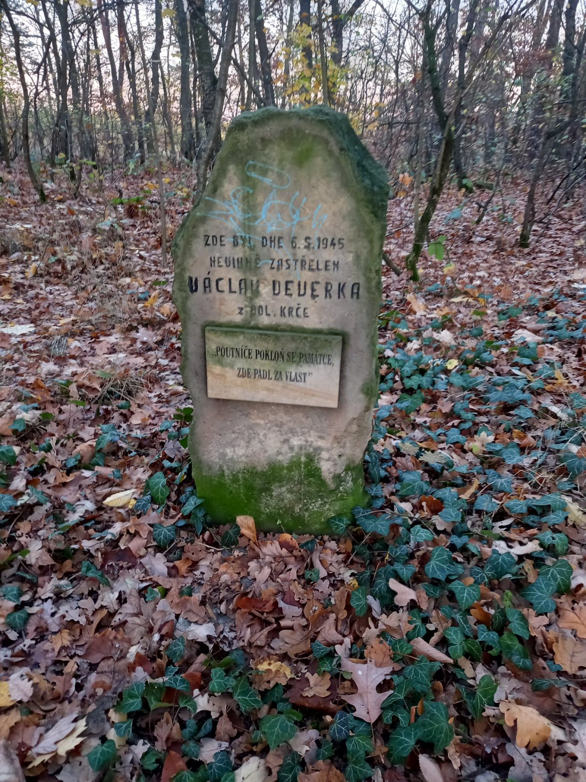 „V lesním divadle (v údolí asi tak 300 m dál po cestě) tábořila na konci války asi stovka příslušníků SS. Václav Veverka špatně slyšel a když tudy nesl své dceři jídlo, snažila se ho zastavit německá hlídka. On bohužel neslyšel povel "Halt!" a byl hlídkou zastřelen.“