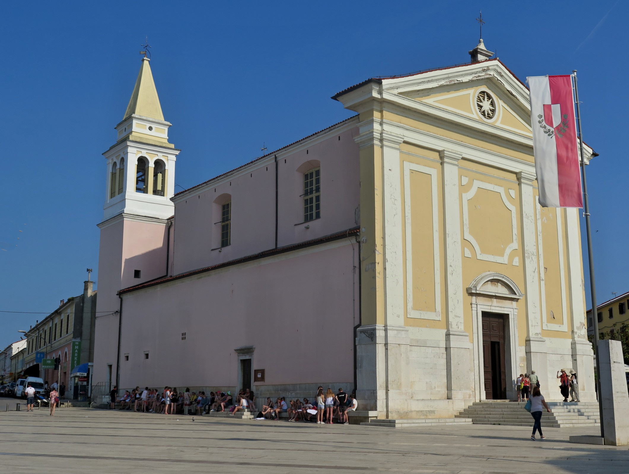 Porečský kostel Panny Marie Andělské najdeme na zdejším náměstí Svobody (Trg Slobode). A je to svým způsobem spojení logické a symbolické, protože jeden z největších kostelů ve městě tvoří dominantu zdejšímu největšímu náměstí. Navíc ani tento svatostánek ani jeho domovská prostora zdaleka nepatří „ve svém oboru“ k těm nejvěkovitějším. Však se také nacházejí pouze v těsné blízkosti historického centra města …