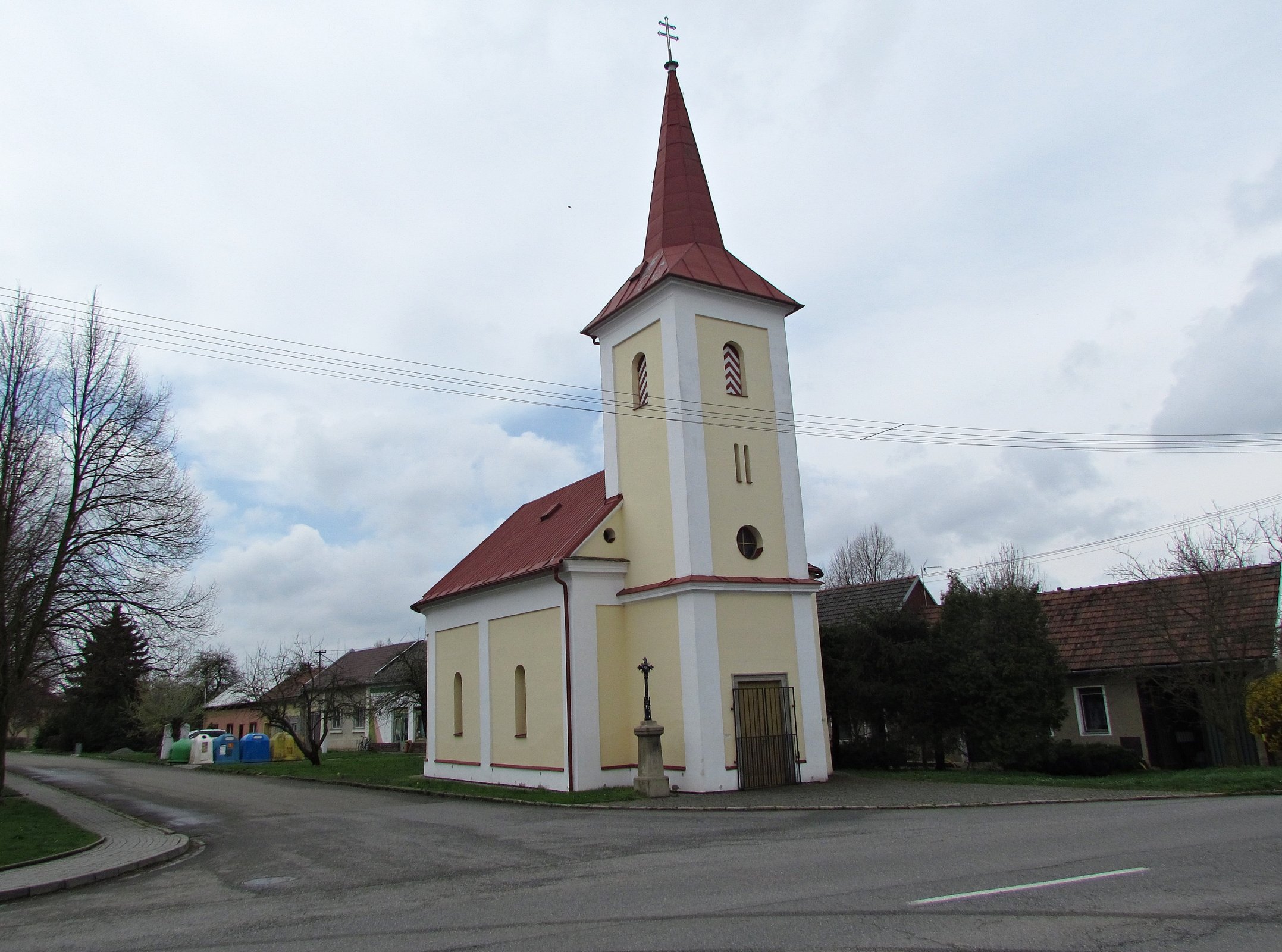 Namísto ní se ale návštěvník může v centru obce potěšit pohledem na vzorně opravenou kapli, zasvěcenou svatému Floriánovi. Podle análů zde stojí už od roku 1690, ale mám silné podezření, že od té doby nejen notně změnila stavební sloh, ve kterém byla zbudována, ale i svůj vzhled.