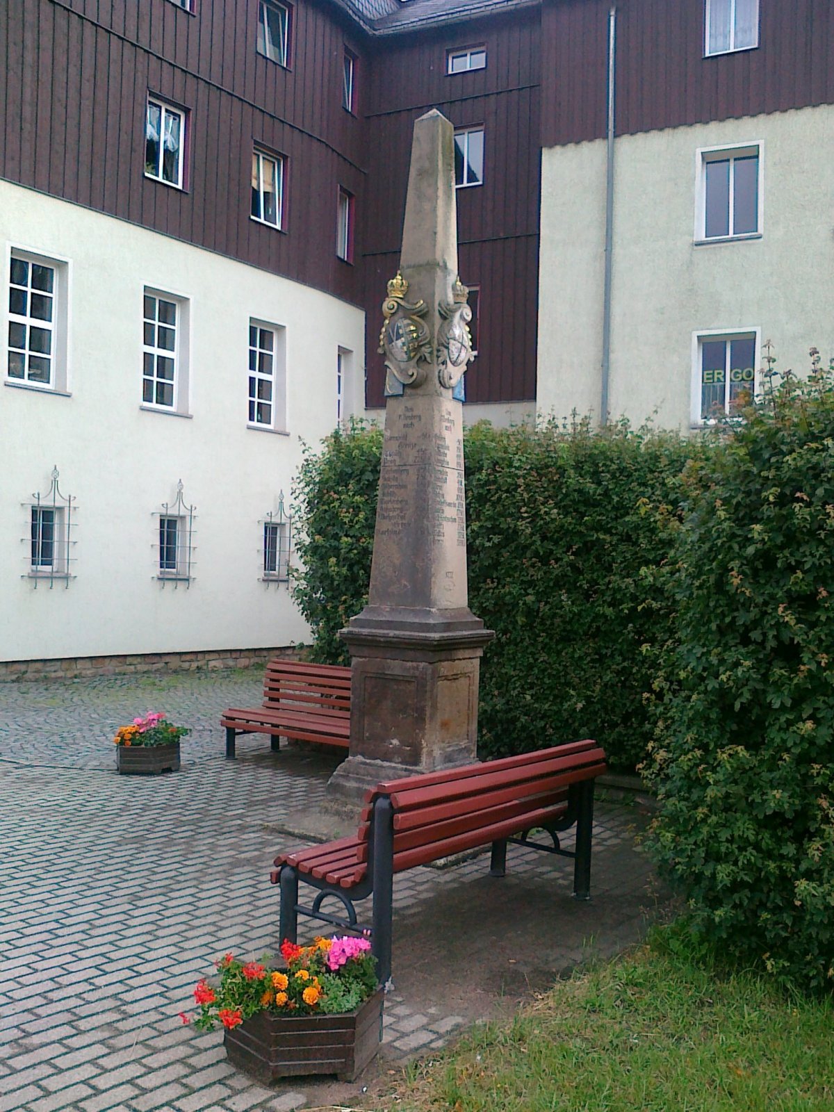 Milník stojí před radnicí v Altenbergu. Při náletu na konci války byl poškozen. Opraven byl v roce 1959 a pak v roce 1987 nově zrekonstruován. Milník je 5 metrů vysoký a skládá se ze sedmi částí.