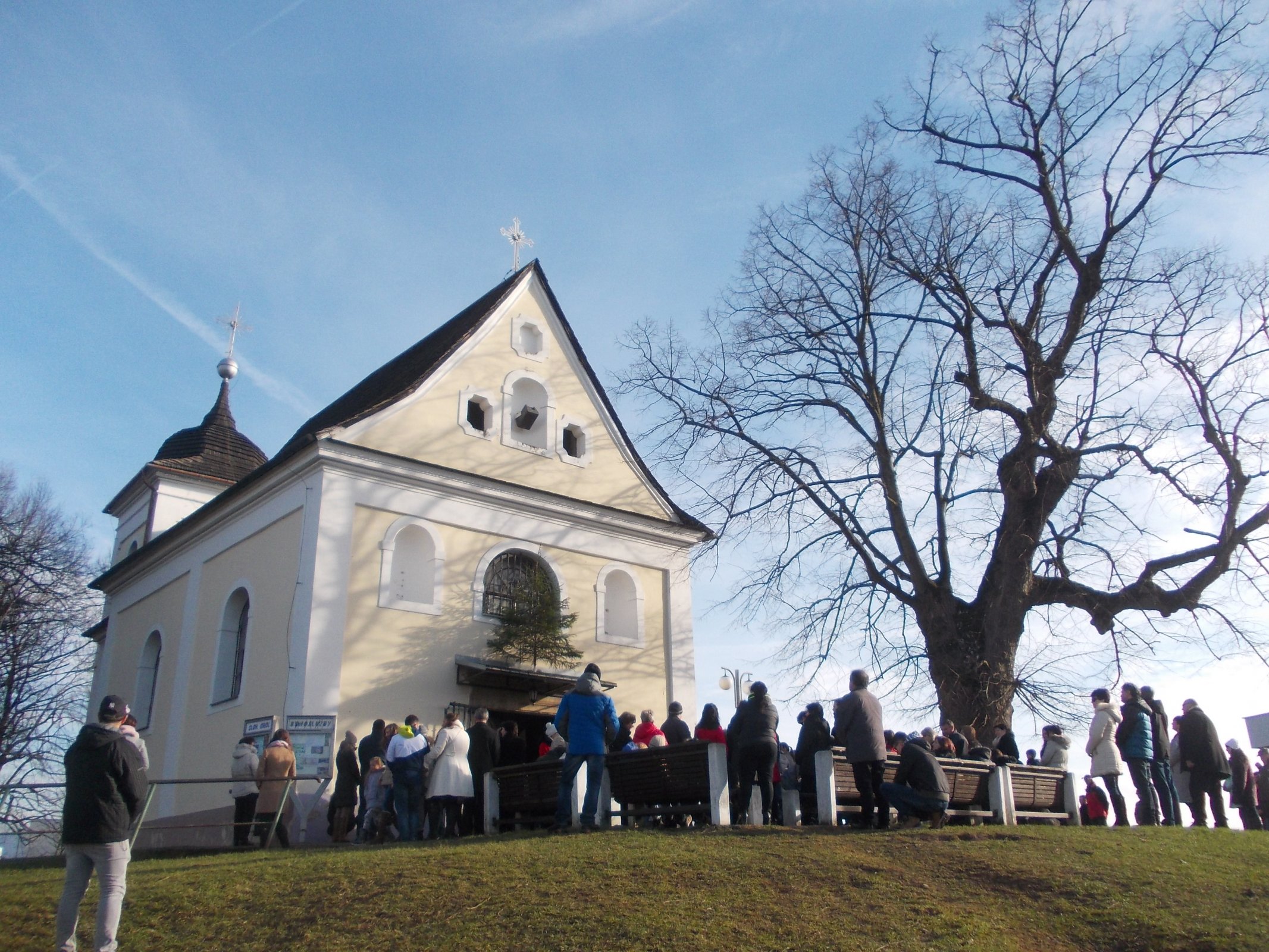 So snehom to je u nás o vianociach ale trochu skromnejšie už niekoľko rokov, hlavne v nižších polohách. Najkrajšie to vyzerá na obrázkoch maliara Josefa Ladu, tá zimná atmosféra a kostolík tak troška na kopci. To ma napadlo počas návštevy kostolíka sv. Heleny v Považskej Bystrici. Kedysi určite viditeľný už z väčšej diaľky je dnes ukrytý medzi panelákami sídliska Rozkvet. Pokiaľ sa ale vymotate od panelákov, potom už je to všetko ako zo starej pohľadnice alebo kresby. Kostolík sv. Heleny je na kopci alebo vyvýšenine, veža a jeho strecha je pokrytá šindľom a pretože je menší, ľudia počas modlitby stoja aj vonku.