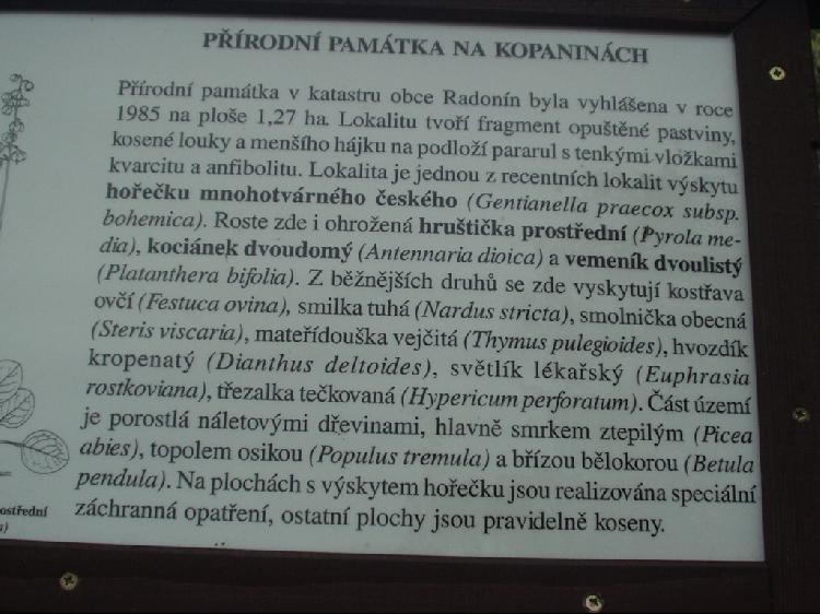 Louka nad Radonínem s výskytem některých ohrožených druhů teplomilné květeny.