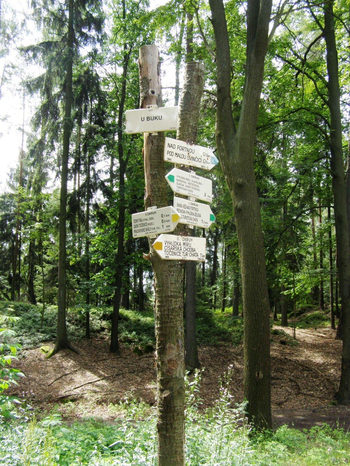 Turistické Rozcestí U Buku ukazuje výletníkům cestu mezi centrální částí skal a jižní částí ve směru od Šikmé věže. Kříží se zde zelený I. okruh se žlutým II. okruhem, třetí směr ukazuje značka modrá ve směru rozc. U buku - rozc. Pod Malou Svinčicí.