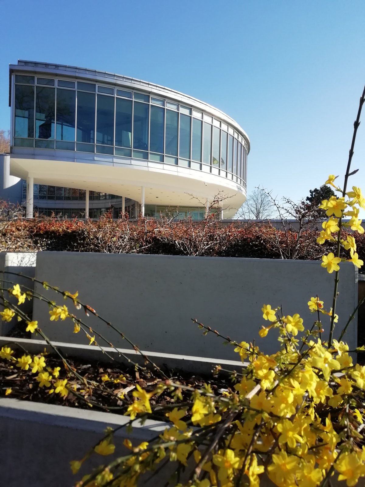 Moju pozornosť upútala okrem peknej budovy aj kvetina s malými žltými kvietkami, nebolo by to nič zvláštné, keby nebol koniec februára !