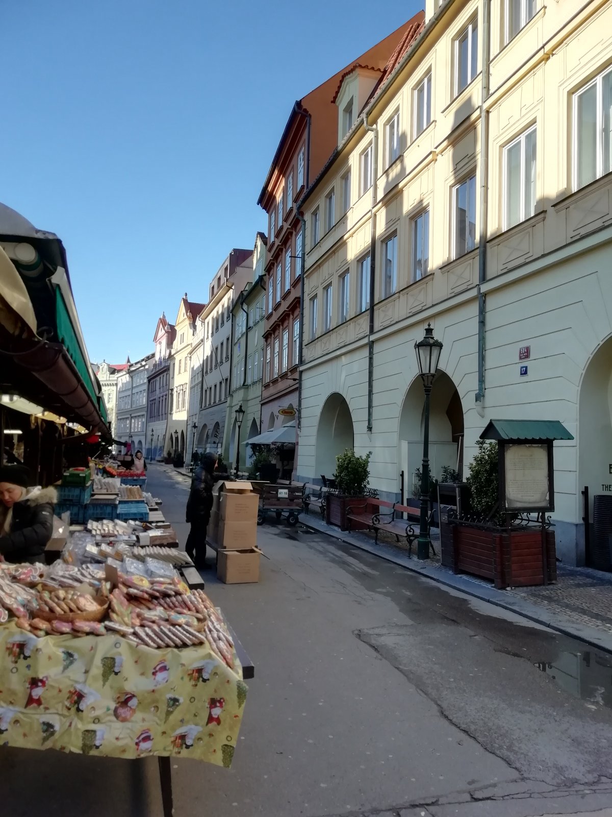 Praha - Havelská ulice s trhoviskom a kostolom sv. Havla