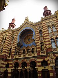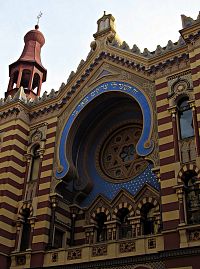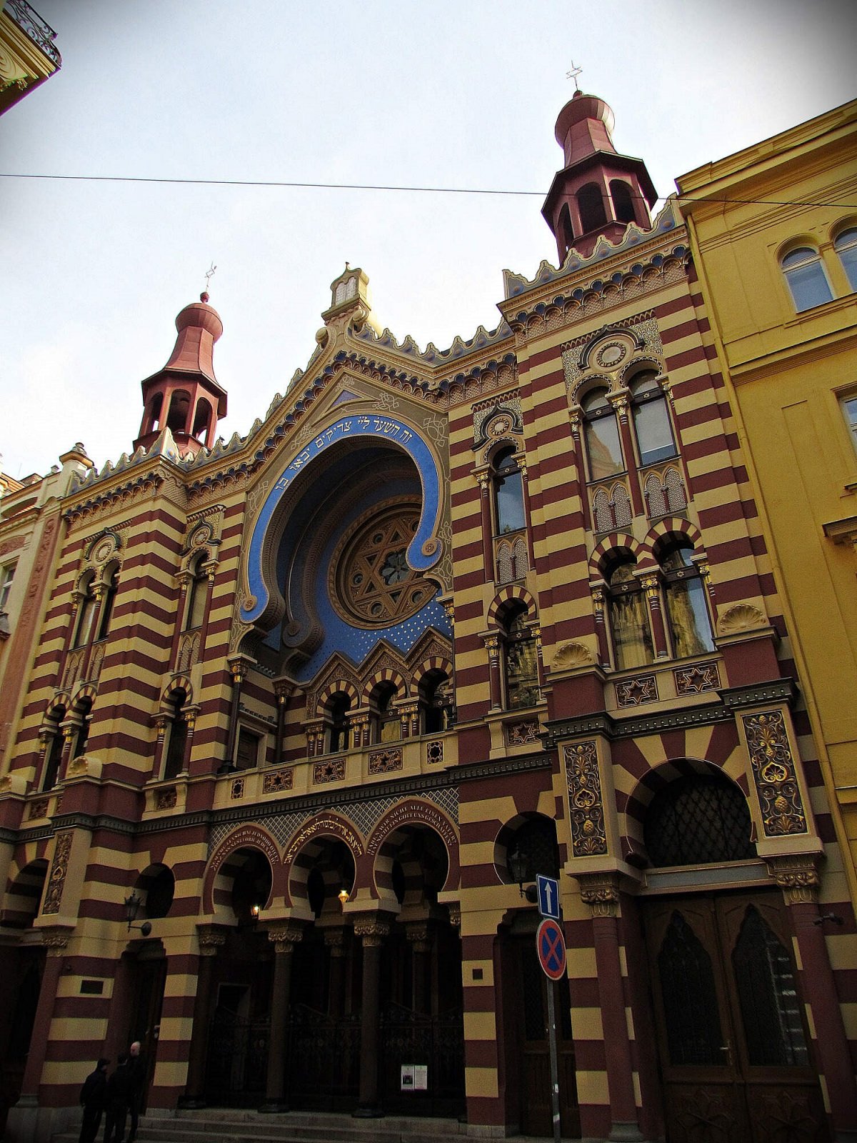 Jeruzalémská synagoga je sice nejmladší, ale zároveň také největší synagogou pražské židovské obce a je velmi interesantní symbiózou maurského slohu a secese. Procházející turisty nejvíce upoutá její přepychové a překrásně zbarvené průčelí. Maurské oblouky a rozeta jsou proloženy červenými a bílými pásy kamene a spolu se spektrem dalších barev ji zdobících budova tuhle část ulice doslova osvětluje. V interiéru se směs maurských prvků mísí s detailní secesní výmalbou. Takto bohatě vymalované ornamenty ve stylu vídeňské secese už neuvidíme v žádné jiné synagoze v Evropě, ba ani jinde ve světě.