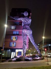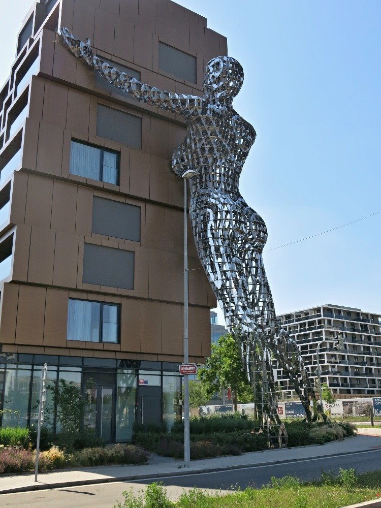 Dům na pražské Invalidovně, který svým tvarem připomíná ležící postavu a který se nachází mezi Rohanským nábřežím a Sokolovskou ulicí, navíc podpírají ještě další dvě skulptury – lidská ruka a noha. Dohromady prý sochy váží asi 60 tun.