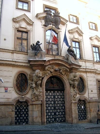 Vchod do kostela: Kostel Panny Marie Ustavičné Pomoci a Božské prozřetelnosti v Nerudově ulici.