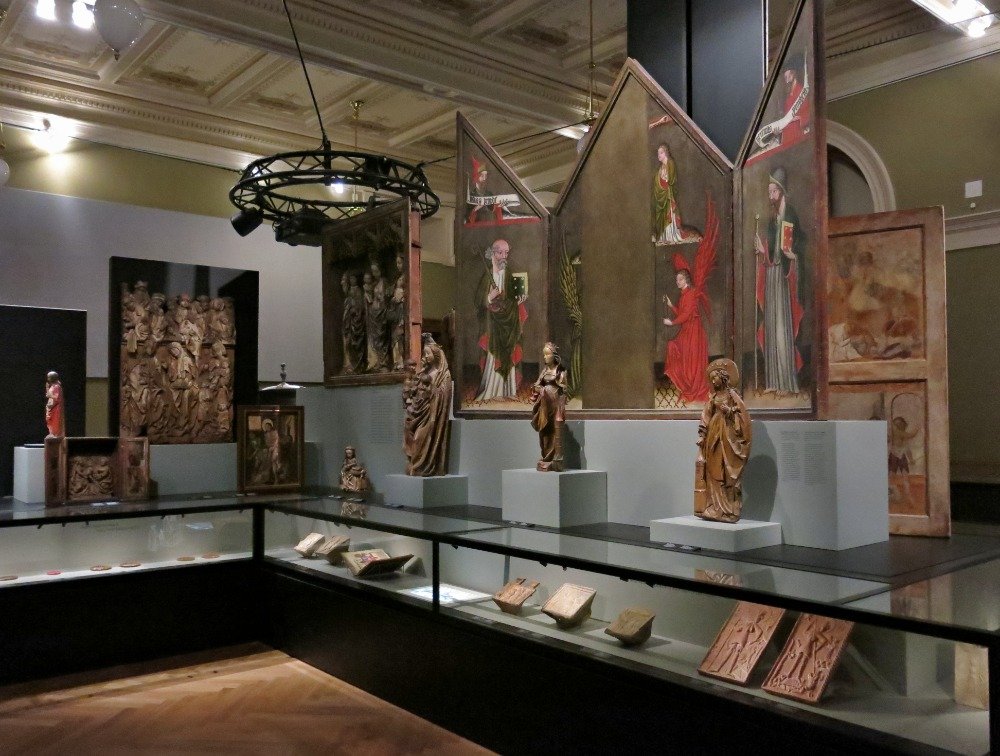 Tato část stálé expozice je k vidění v Historické budově NM na Václavském náměstí a najdeme v ní nejen obrazy, sochy či nejrůznější kamenné artefakty, ale např. také knihy nebo mince. Za zmínku stojí zejména dřevěné skulptury světic z počátku 16. století, dřevěná soška Panny Marie s Ježíškem z konce 15. století, část pokladu zlatých mincí z doby vlády Zikmunda Lucemburského, reliéfní kachle i torza oltářů s obrazy z přelomu 15. a 16. století, pavézy z poloviny 15. století, karty z poloviny 16. století, českou Kněžku lékařskou z roku 1517 nebo dřevěné skulptury Adama a Evy z poslední čtvrtiny 16. století.