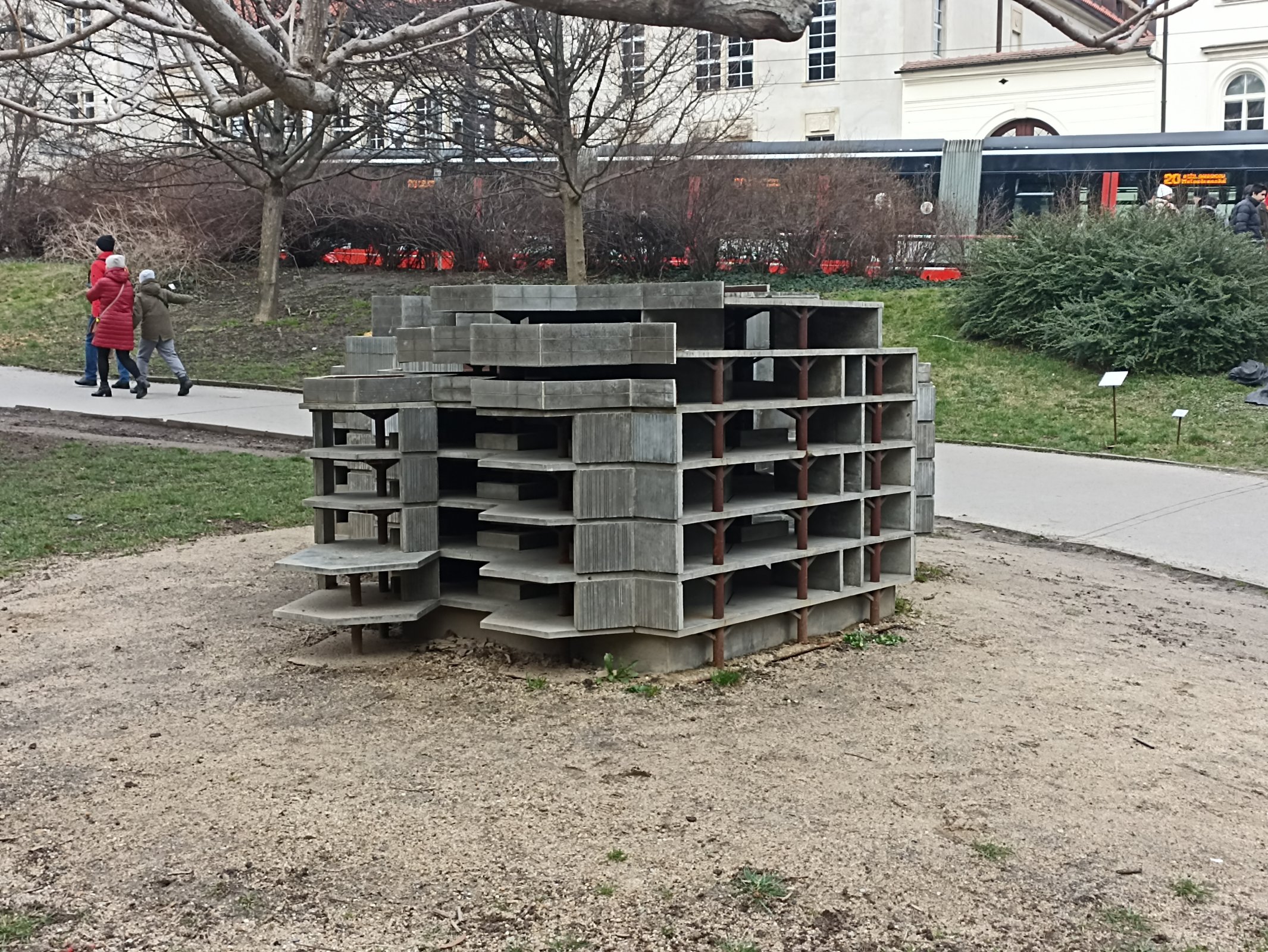 Praha - Park Holubička so sochou Dívka s holubičkou a sochy domov