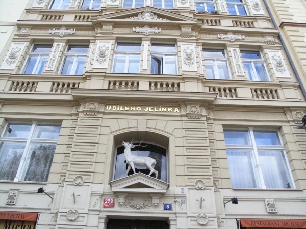 Dům U Bílého jelínka, číslo popisné 273, stojí v Náprstkově ulici, zadní trakt pak v ulici Boršov. Dům v pozdně historizujícím slohu byl vystavěn v letech 1894 až 1895 na místě zbořeného domu od kterého převzal pojmenování. Autorem plánů i stavitelem byl František Tichna.