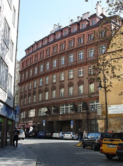 Odborový dům stojí na nároží ulice Na Perštýně a Bartolomějská. Monumentální novoklasicistní budova s kubistickými prvky byla postavena v letech 1921 až 1926 podle plánů Aloise Dryáka. Dům je zdoben řadou reliéfů a soch odkazujících na různé profese.