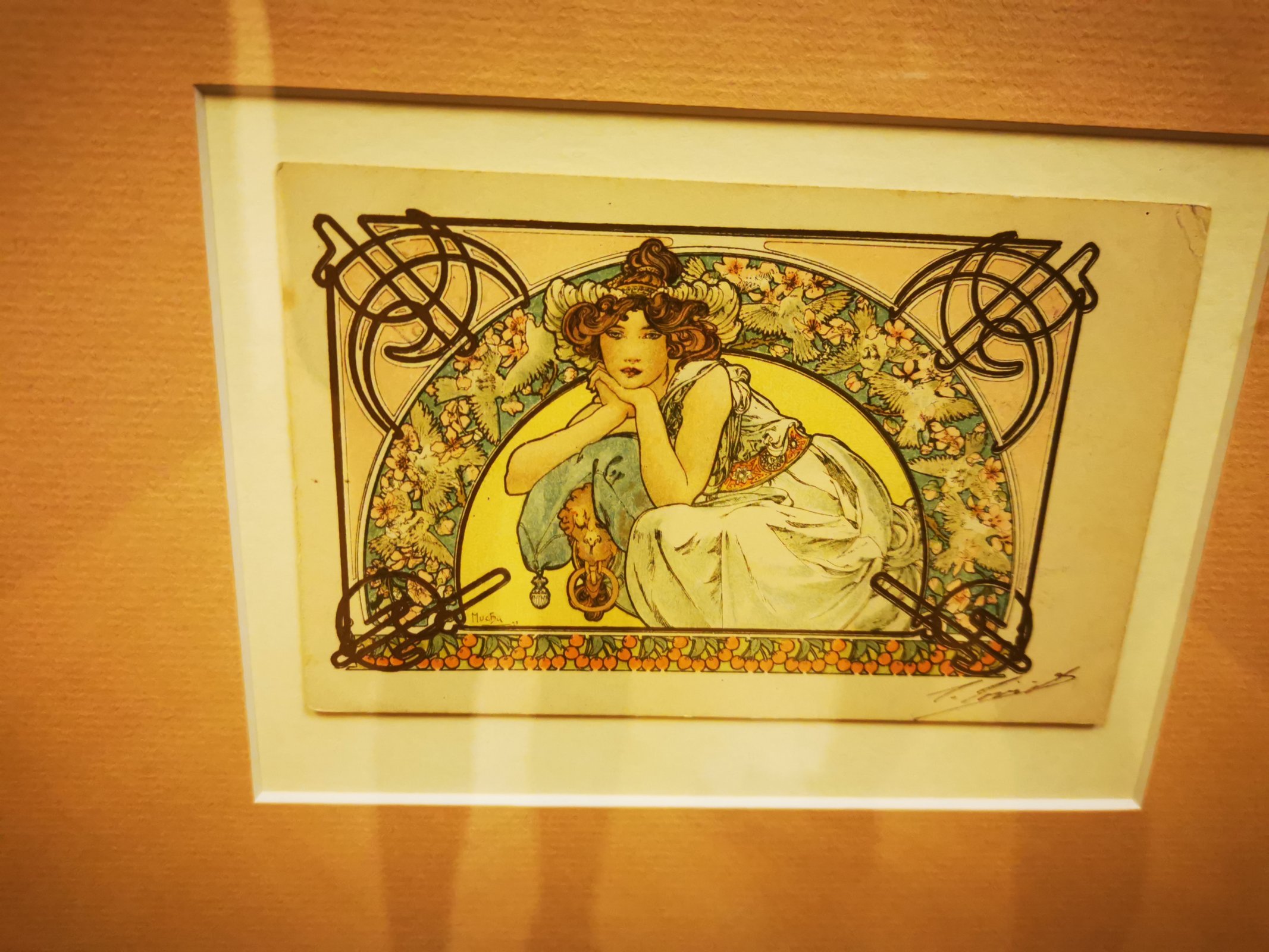 Praha - Staroměstské náměstí - výstava obrazov Alfonsa Muchy